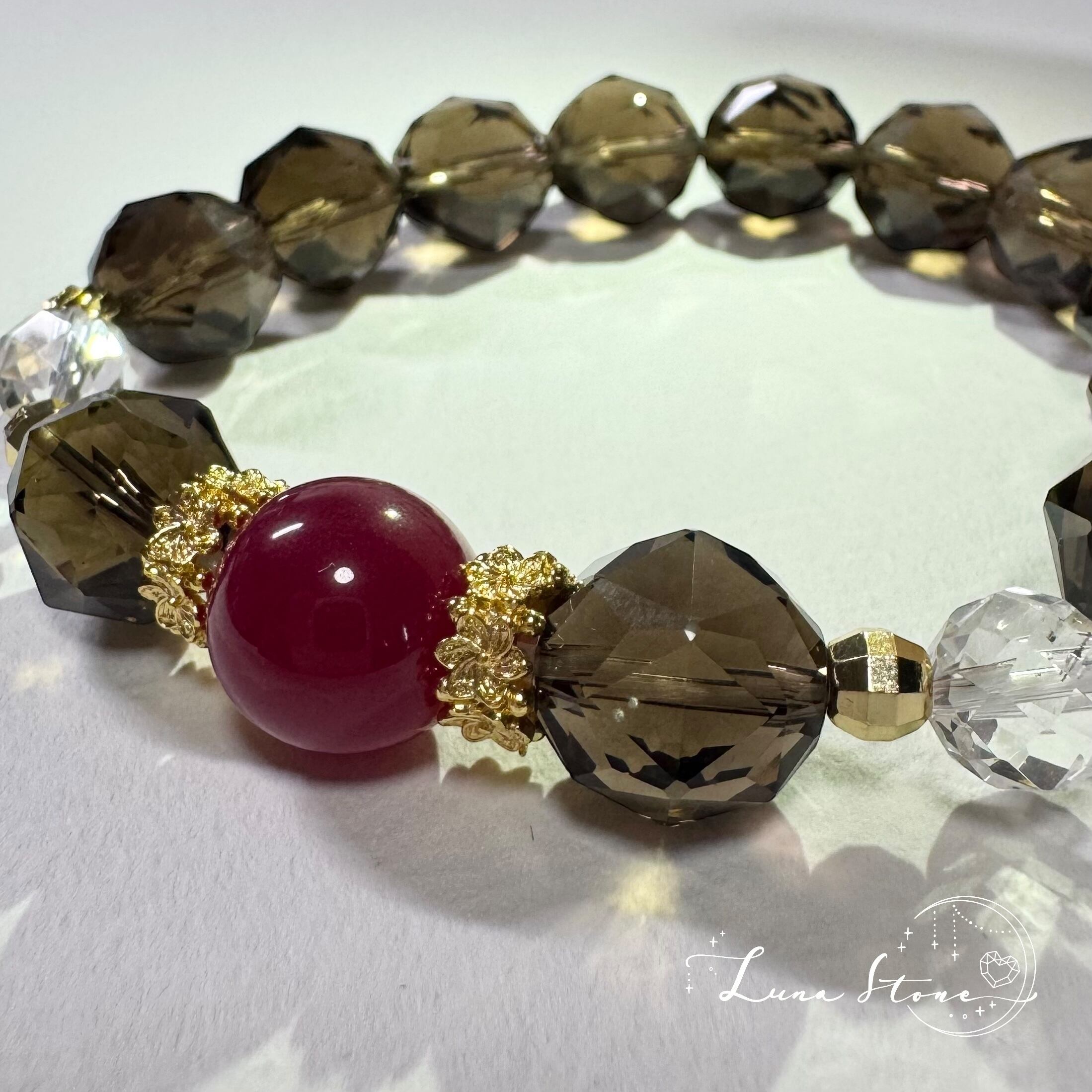 【ルビー×スモーキークォーツ×水晶】自信と安定感を与える 天然石 ブレスレット