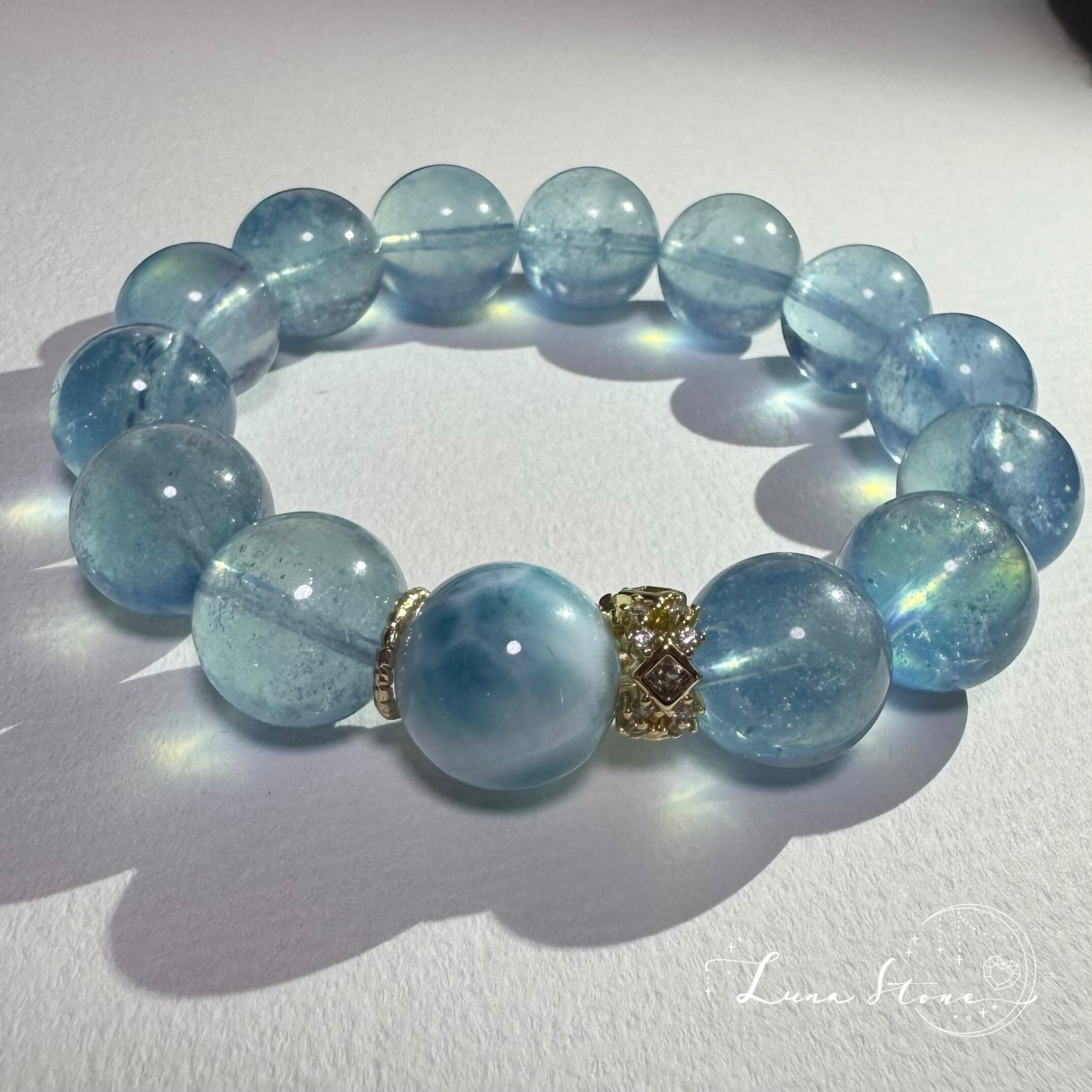 【ラリマー アクアマリン】静かな海のような癒し 天然石 ブレスレット