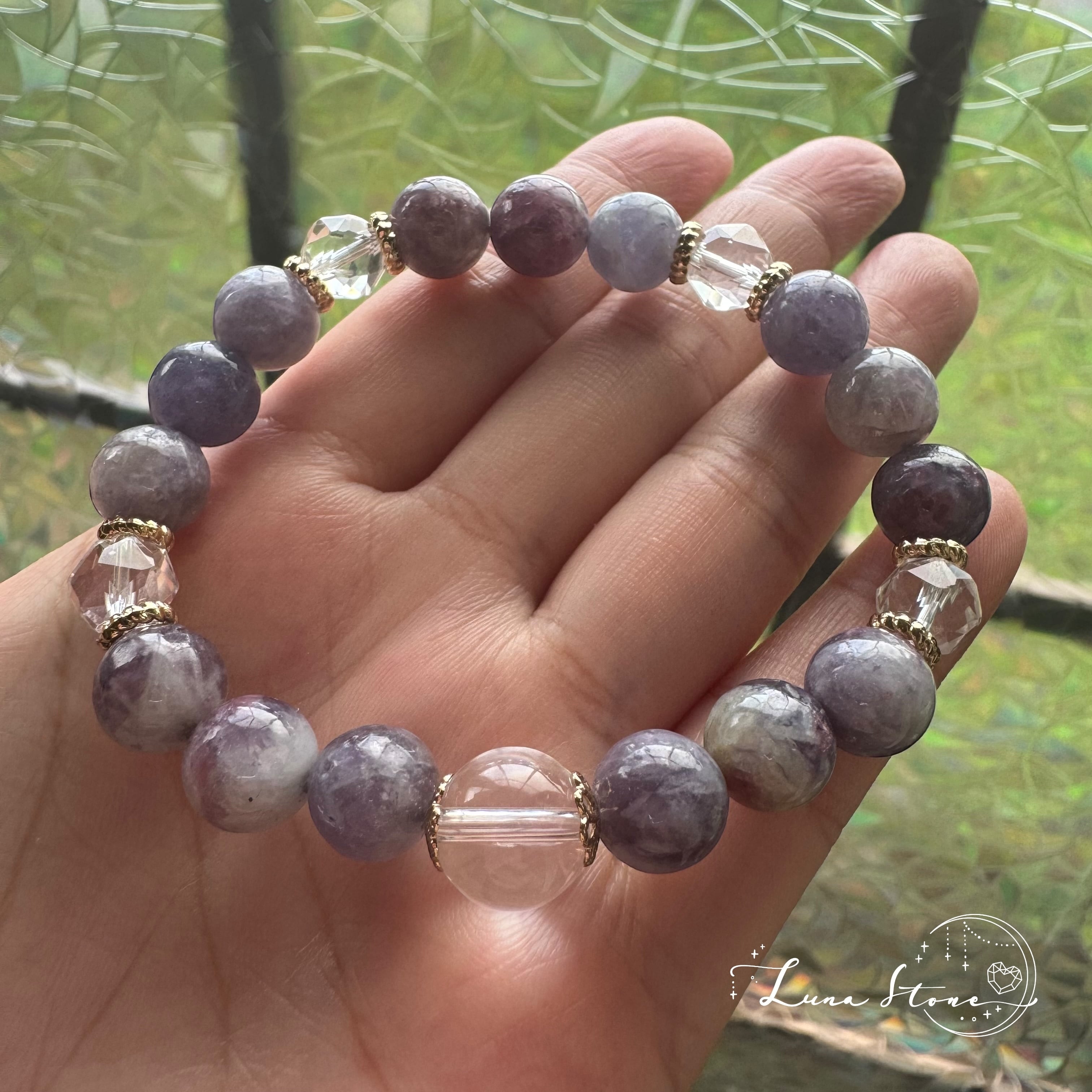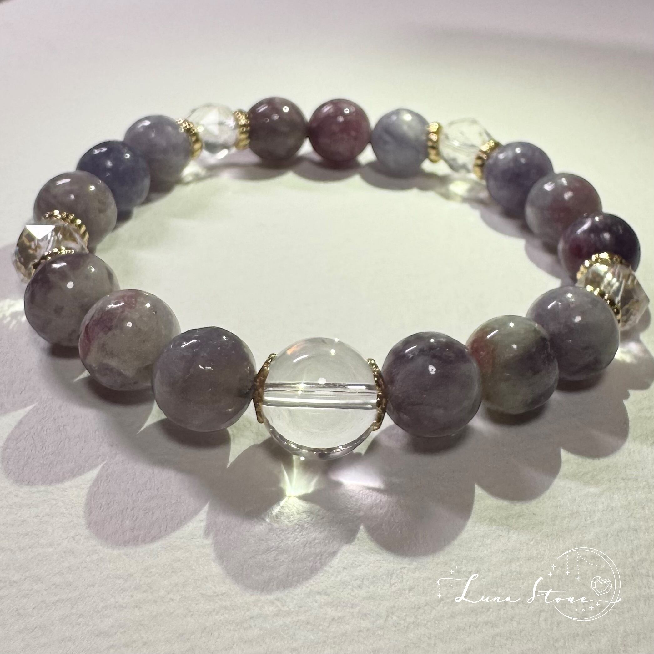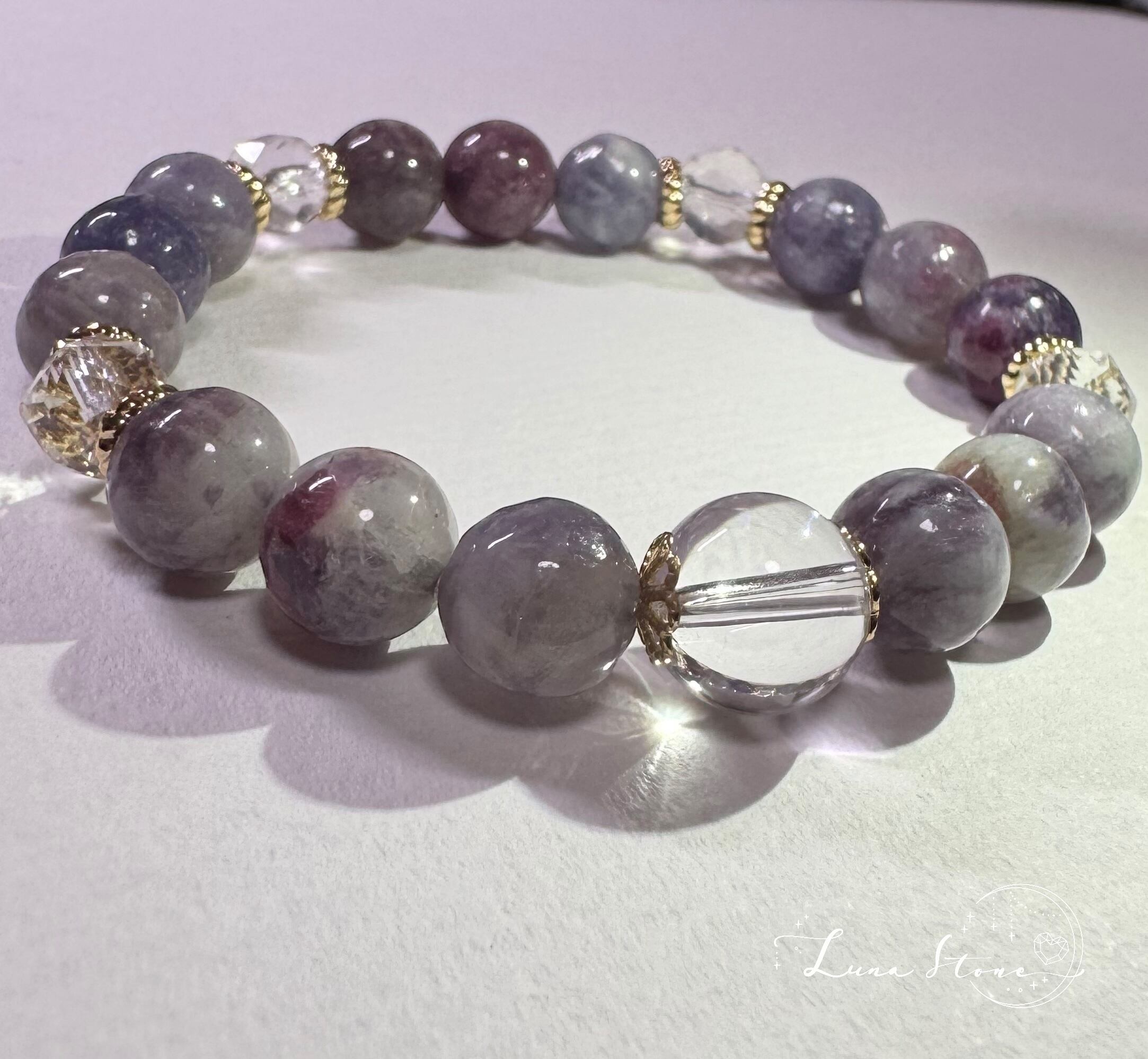 【水晶×ユニコーントルマリン】幻想的な彩りを映す 天然石 ブレスレット