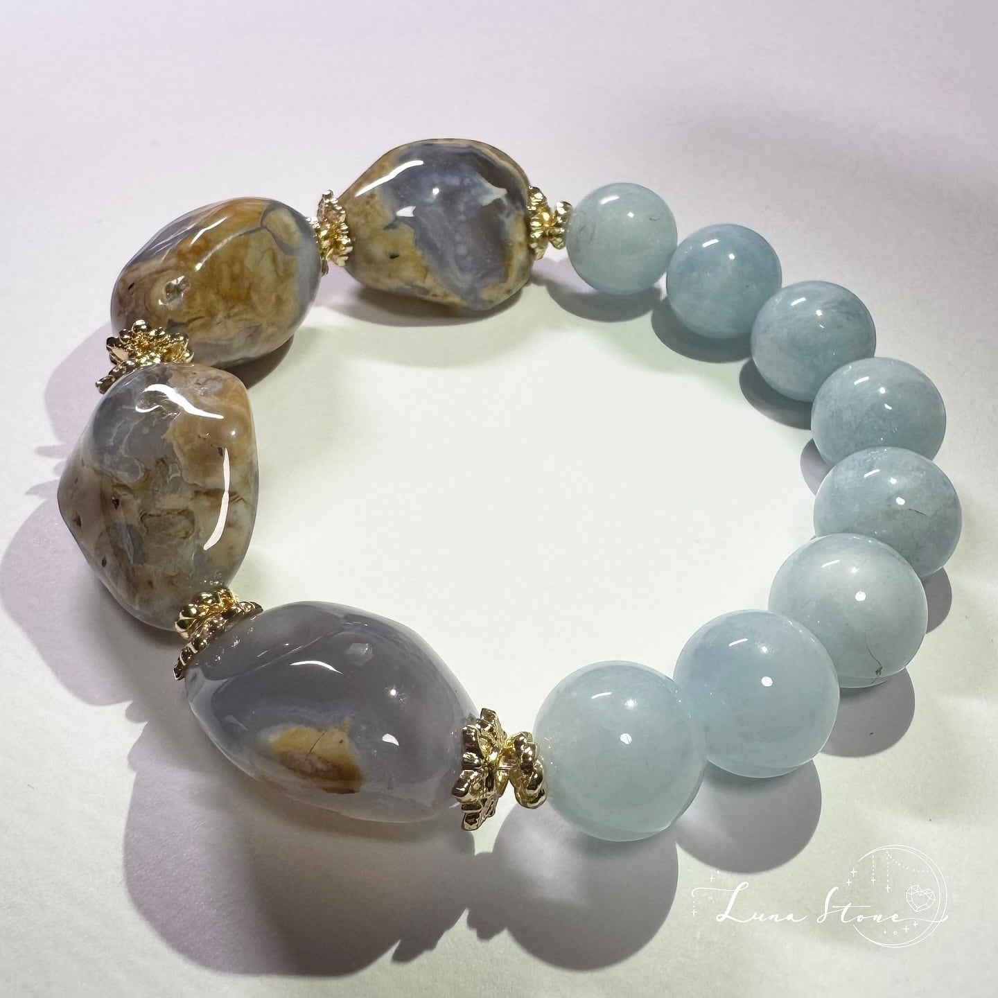 【カルセドニー×アクアマリン】母岩が宿す大地の力と穏やかな海の調和 天然石 ブレスレット
