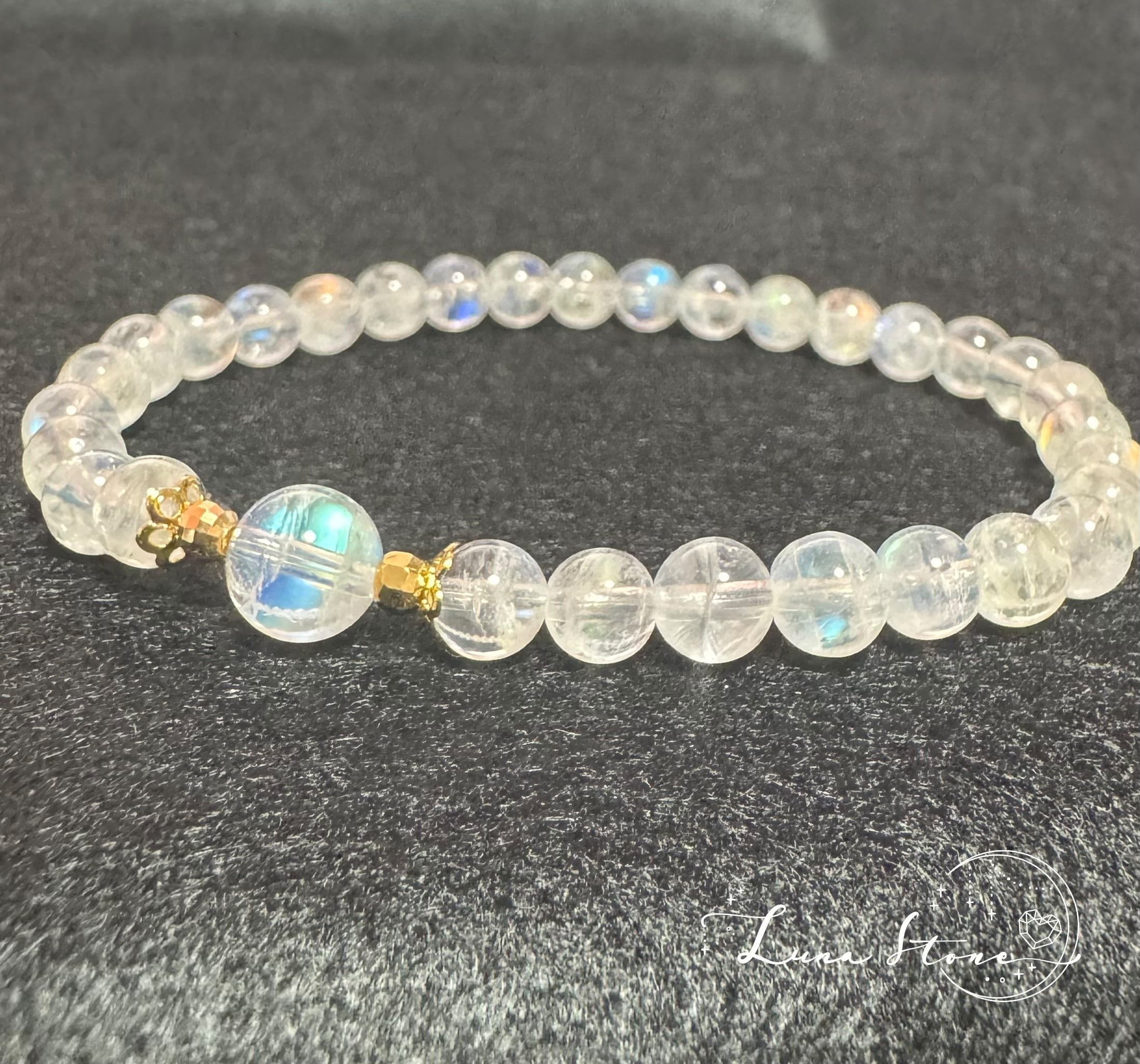 幻想的な虹色シラーが美しいレインボームーンストーンのブレスレットです。