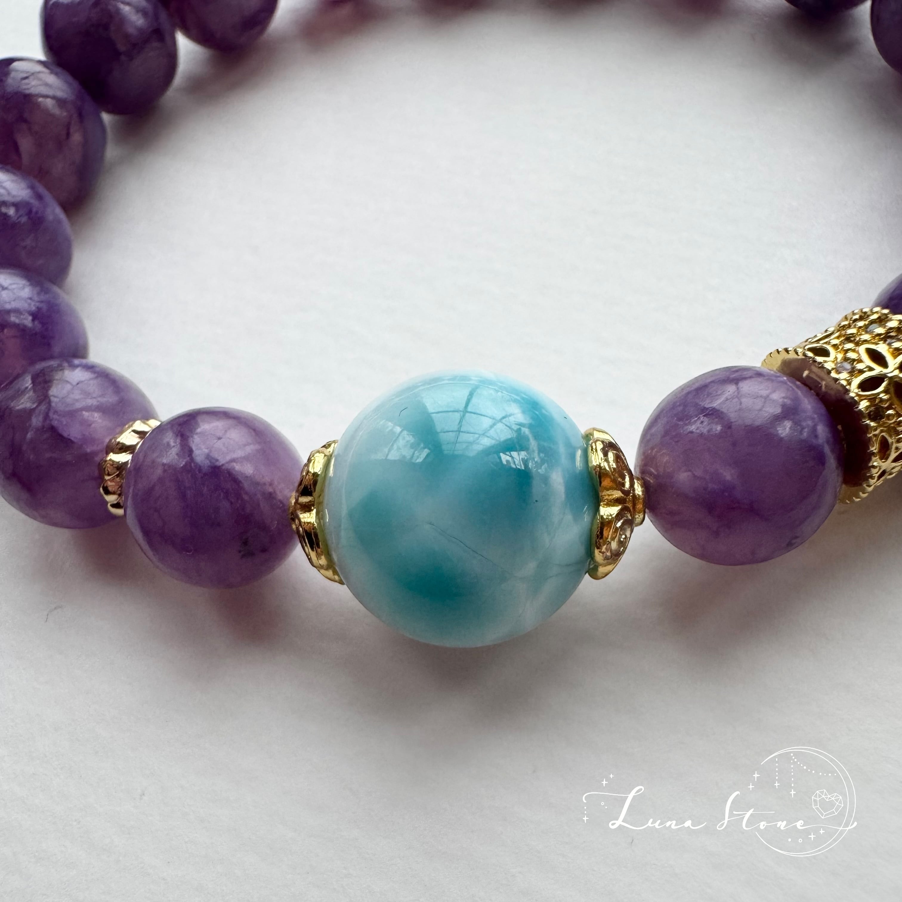 【ラリマー×チャロアイトシリカ】深い癒しと安らぎの光 天然石 ブレスレット