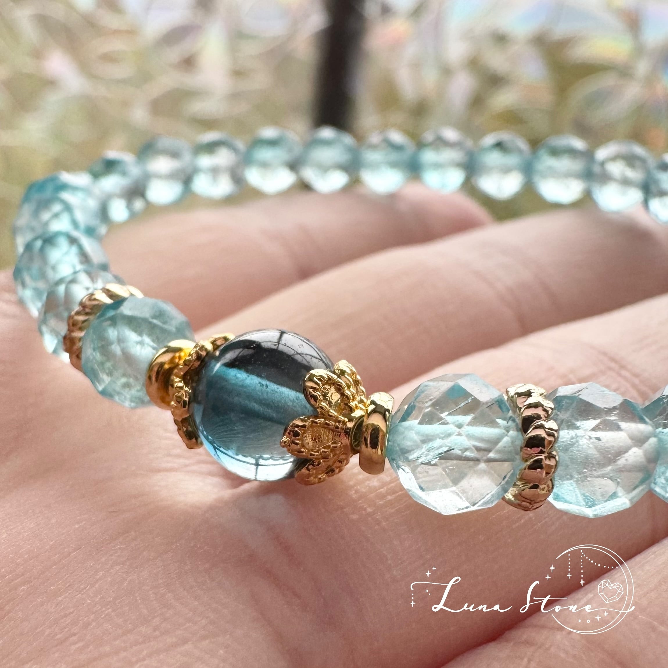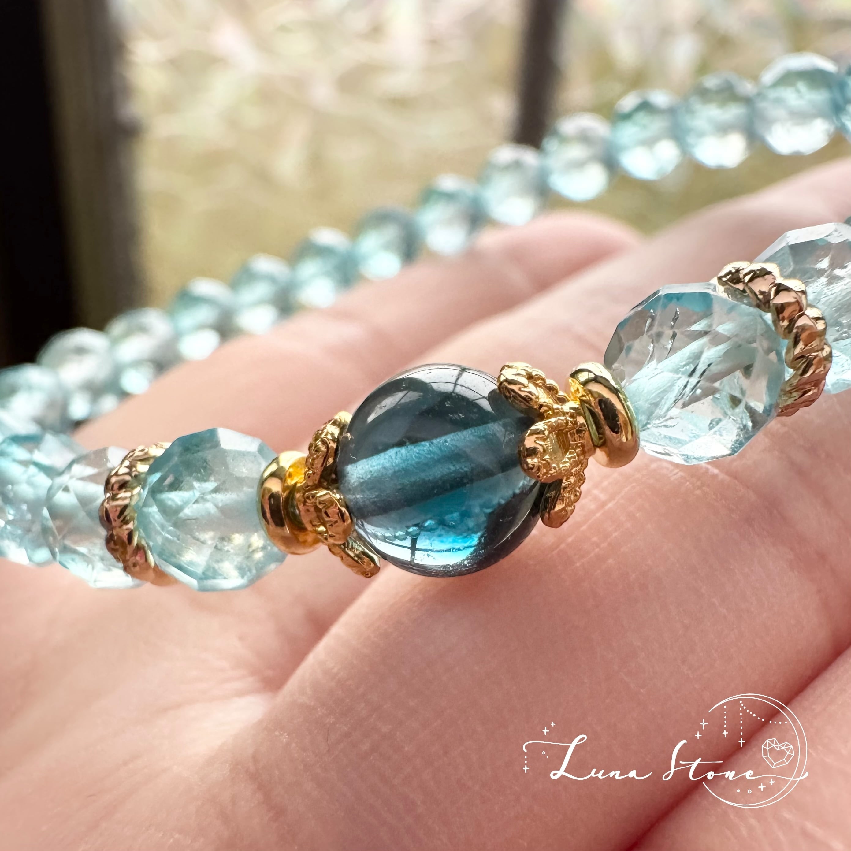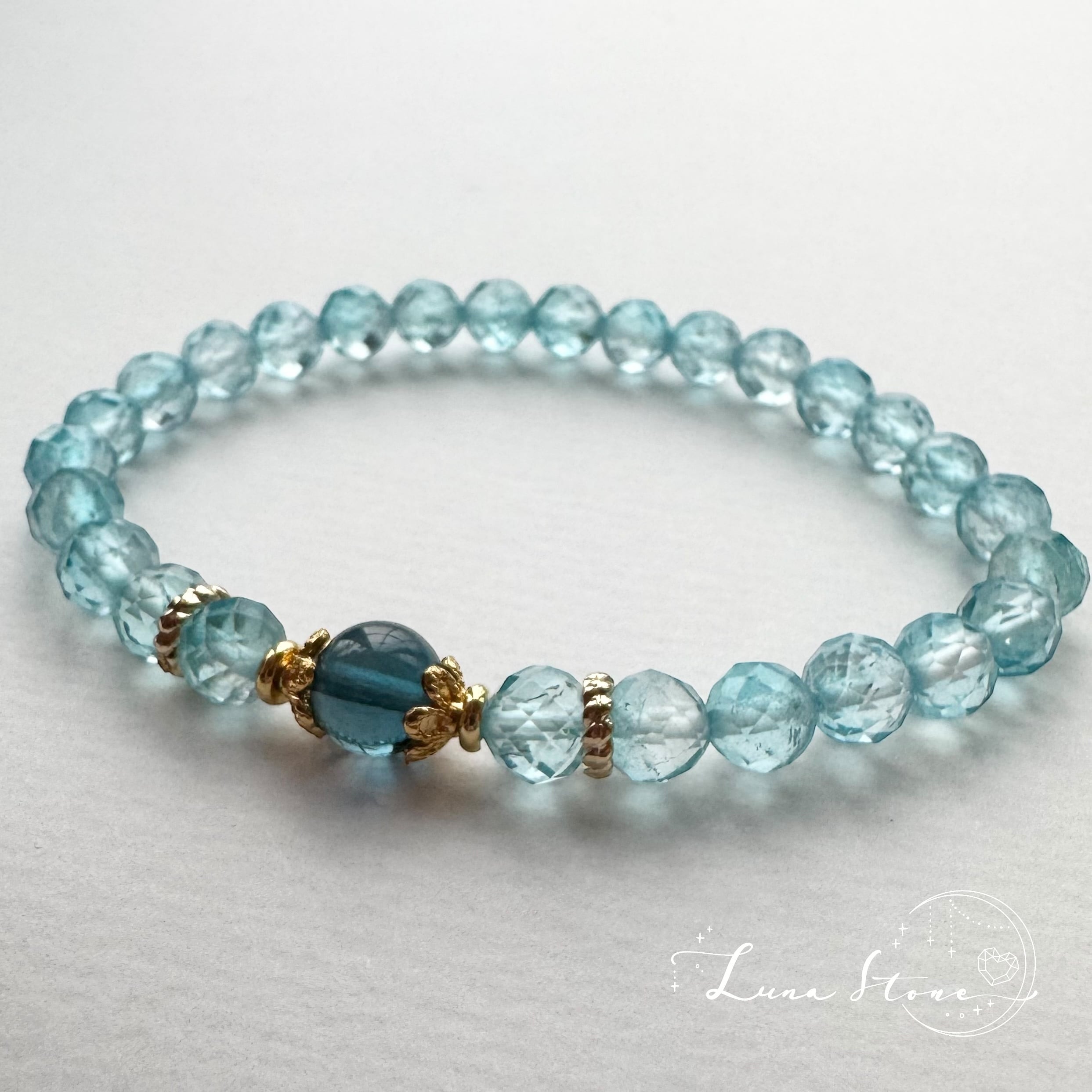 【ロンドンブルートパーズ×スイスブルートパーズ】深海と空色の透明感 天然石 ブレスレット