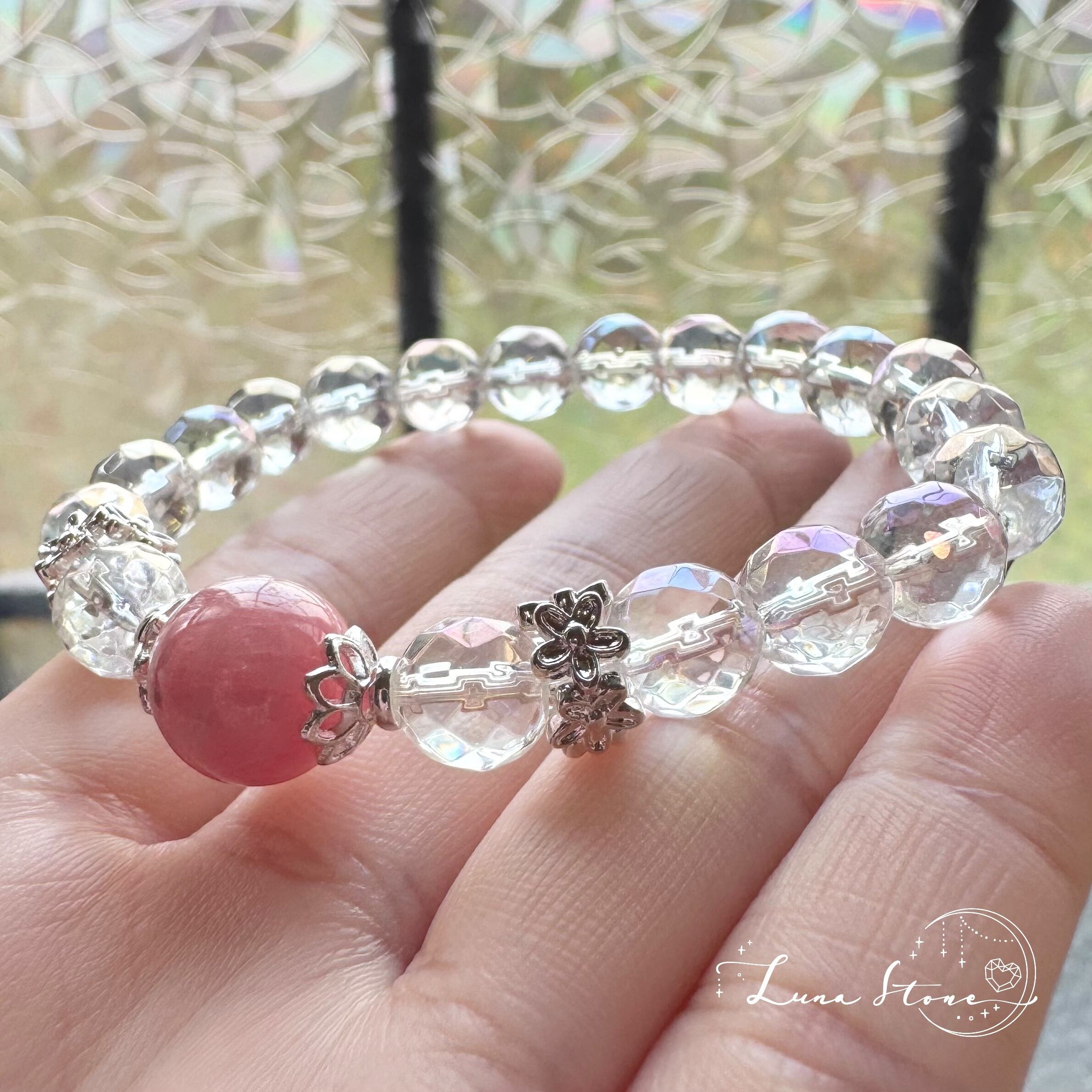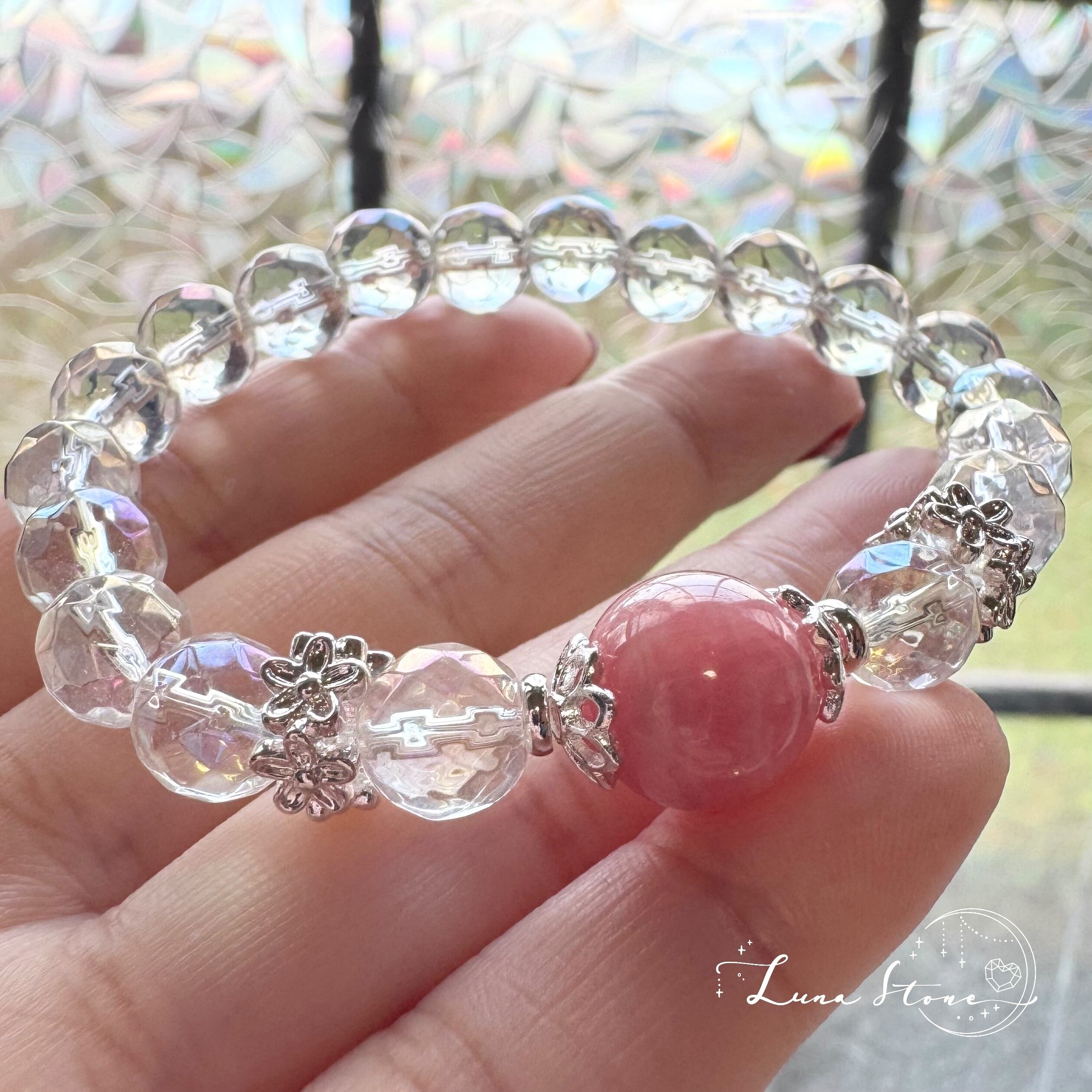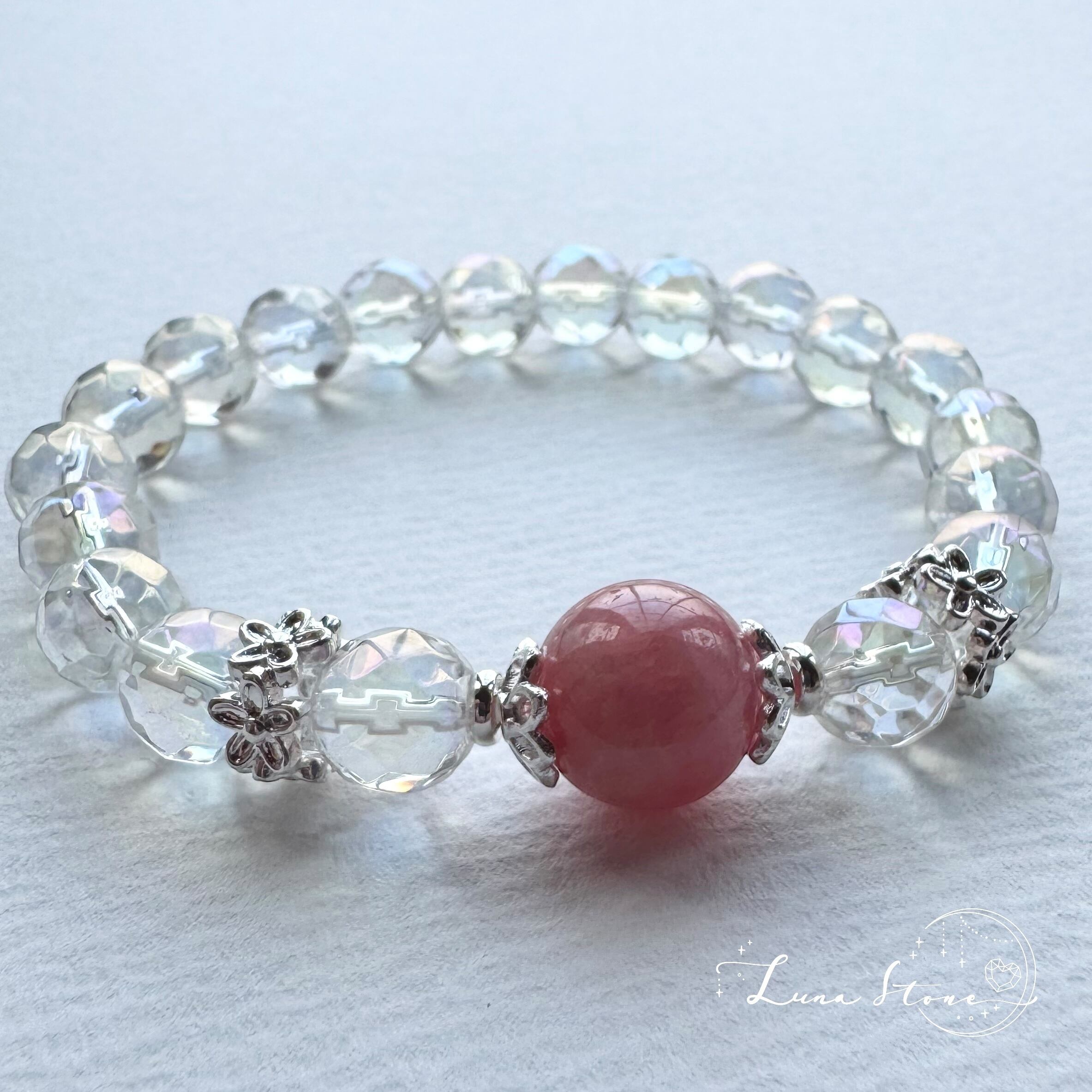 【インカローズ×アクアオーラ】やさしいピンクと透明な輝き 天然石 ブレスレット