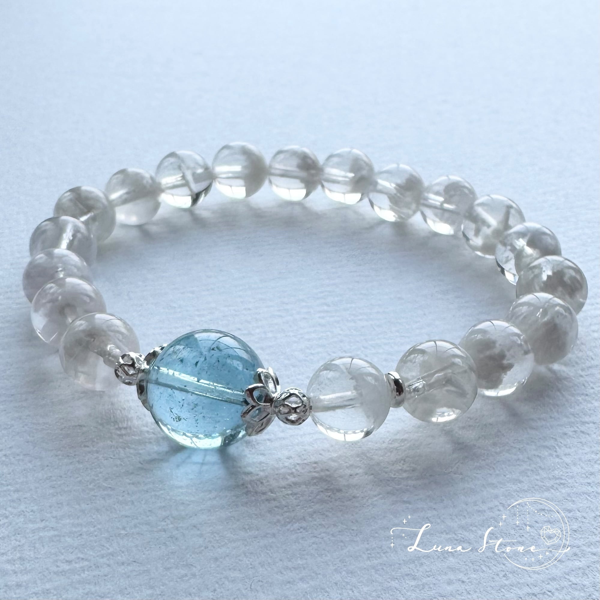 【スイスブルートパーズ × セリサイトインクォーツ】澄んだ青と雪のような内包が響き合う 天然石 ブレスレット