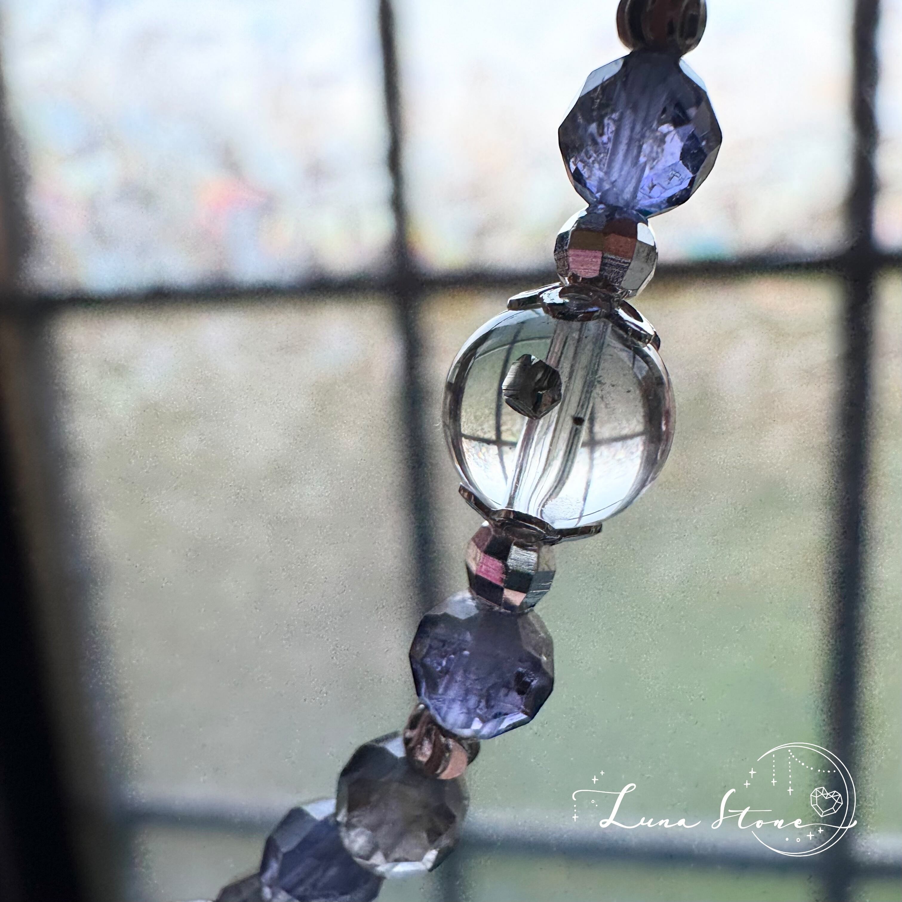 青紫からグレーがかった深い色調で、光を通すと透明感の中に落ち着いた藍色が浮かび上がります。