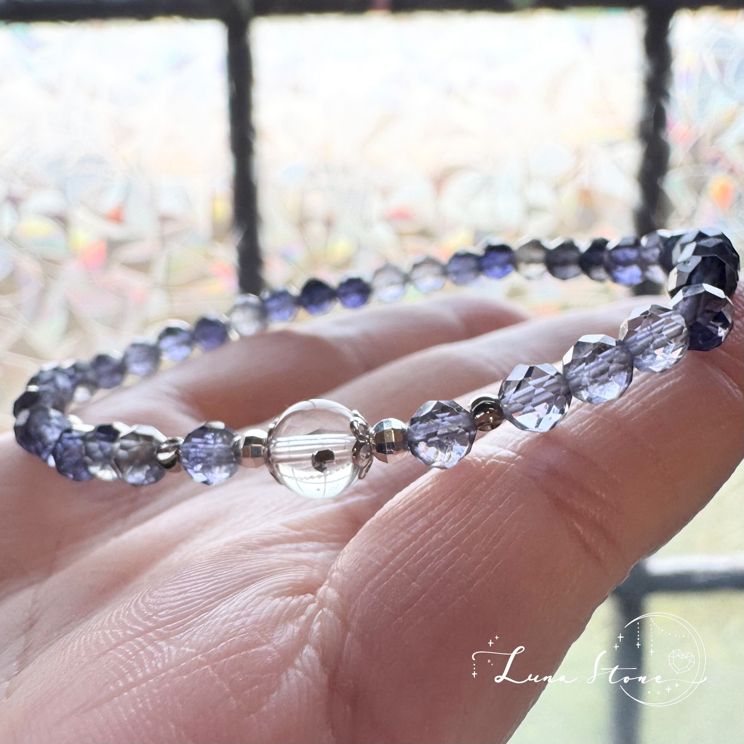 【パイライトインクォーツ × アイオライト】澄んだ光の中に金属鉱物が瞬く 天然石 ブレスレット
