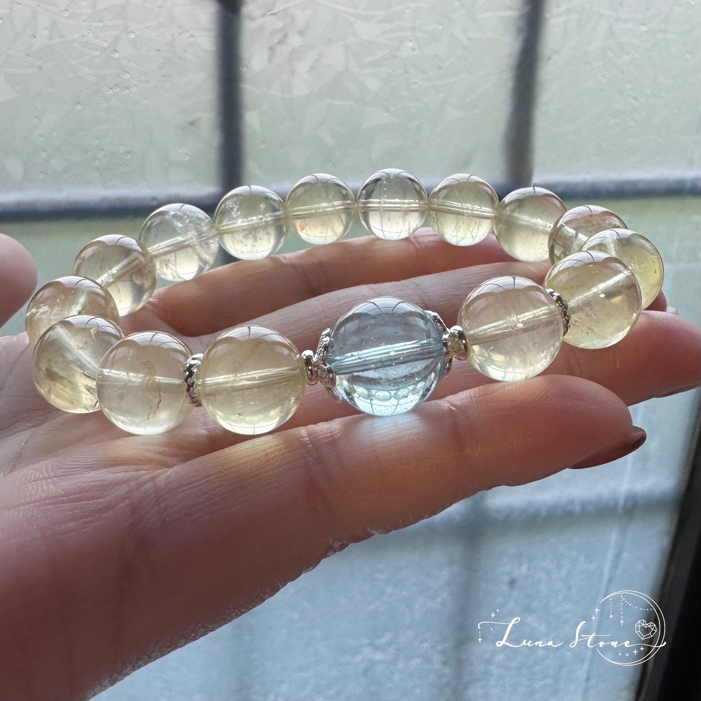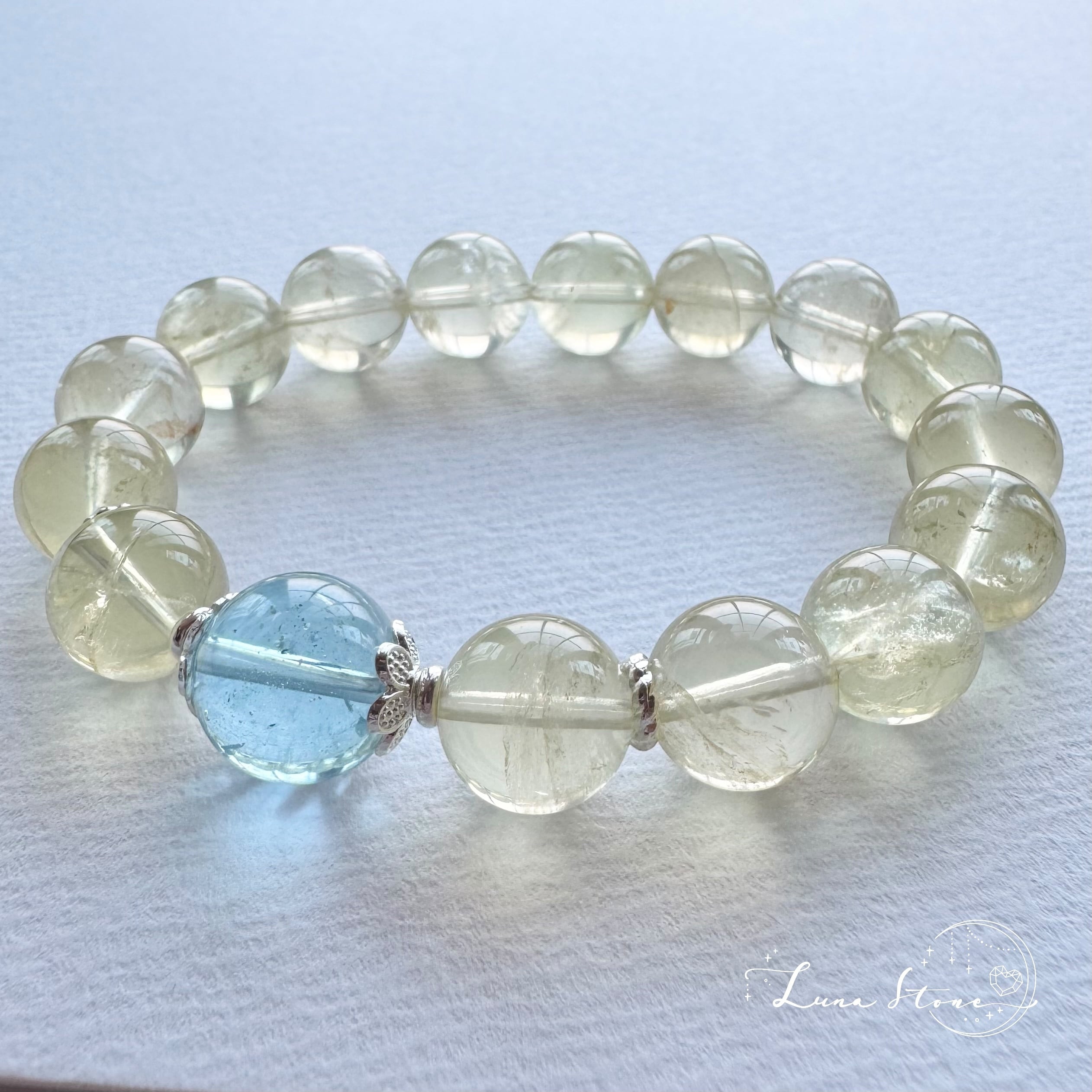 【スイスブルートパーズ × レモンシトリン】澄んだ青と柔らかな黄金光 天然石ブレスレット