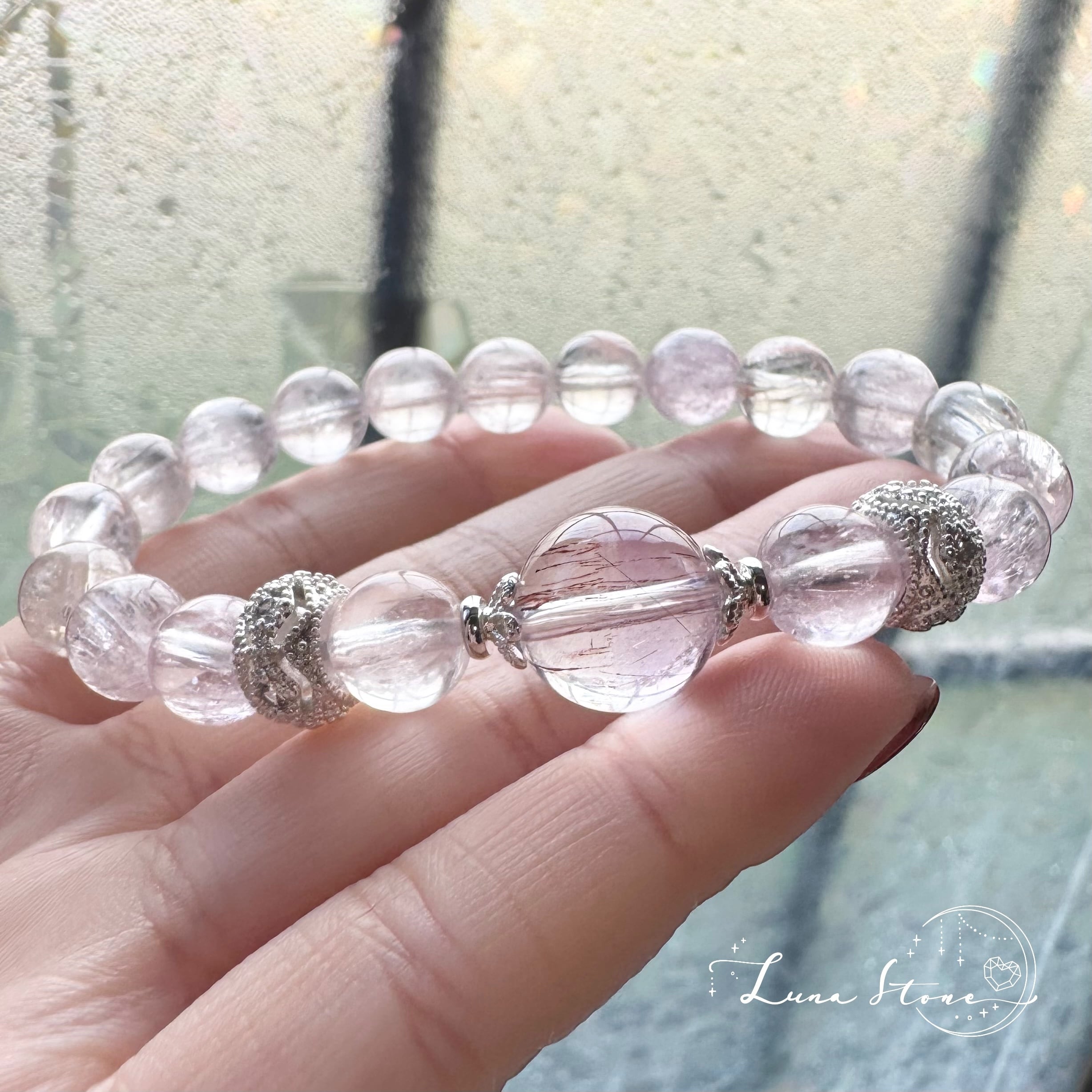 【ゲーサイトインクォーツ(スーパーセブン) × クンツァイト】透明感と内包が織りなす静かな強さ 天然石ブレスレット