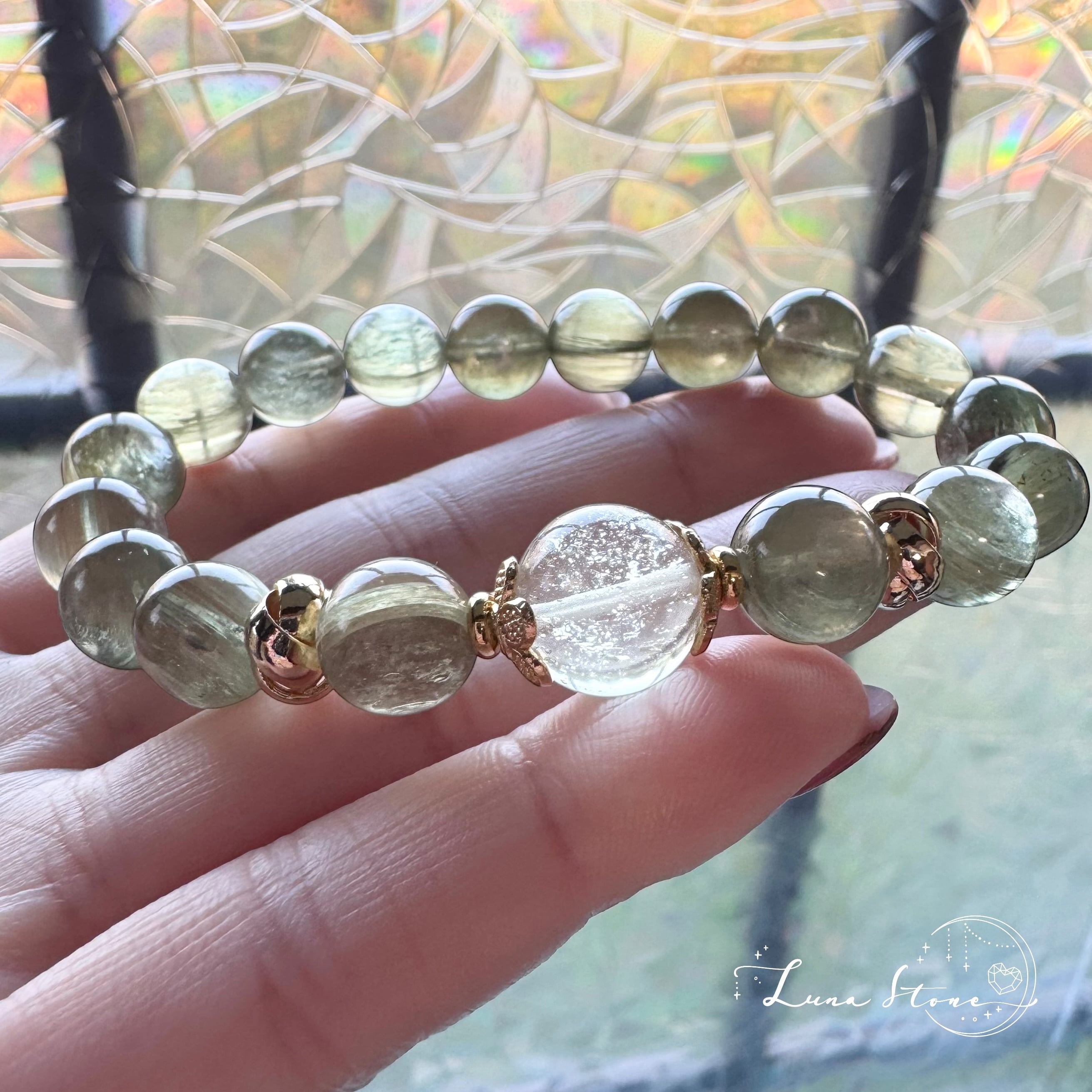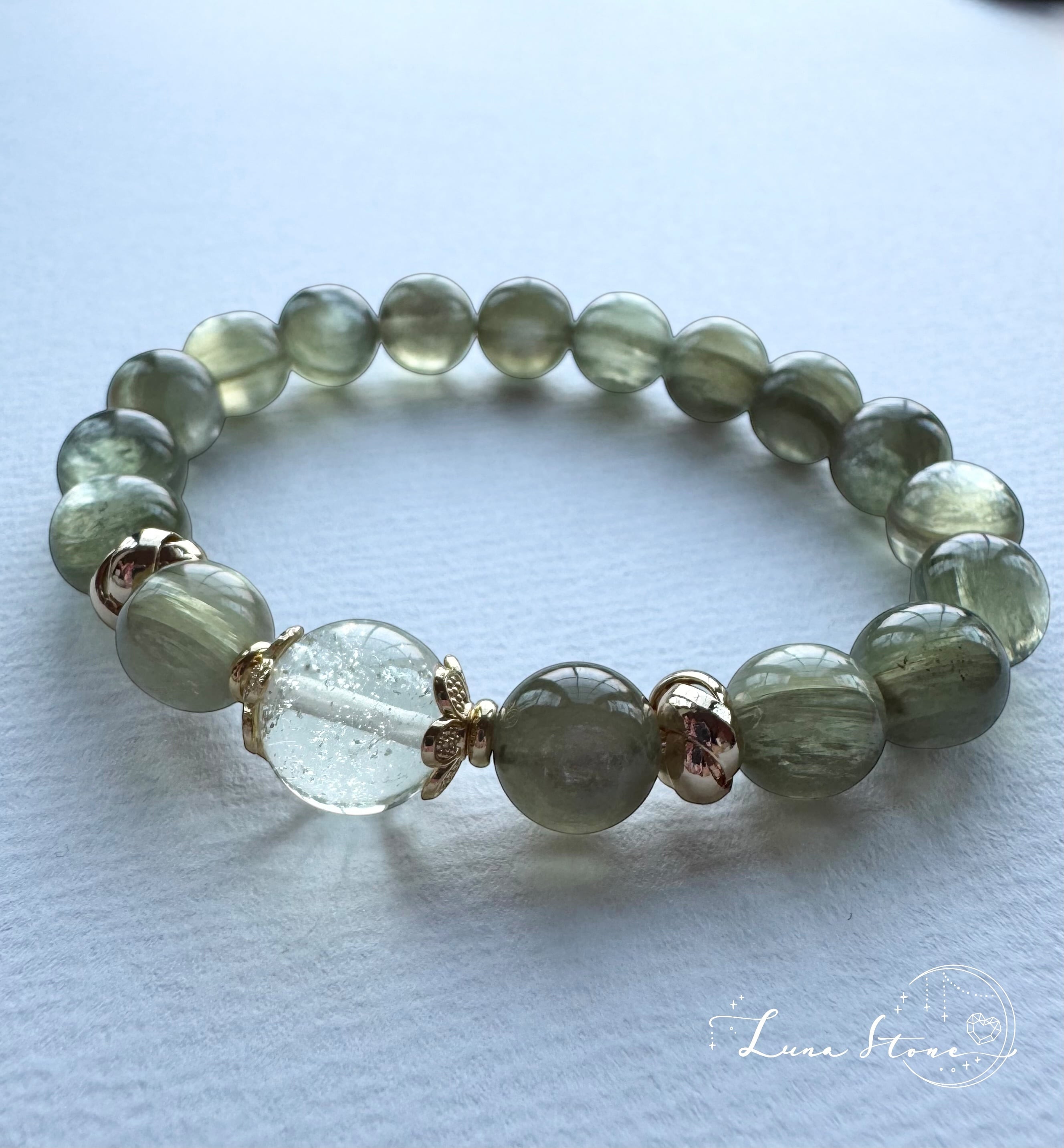 【リビアングラス × グリーンマイカ】静かな覚醒と調和をもたらす 天然石ブレスレット
