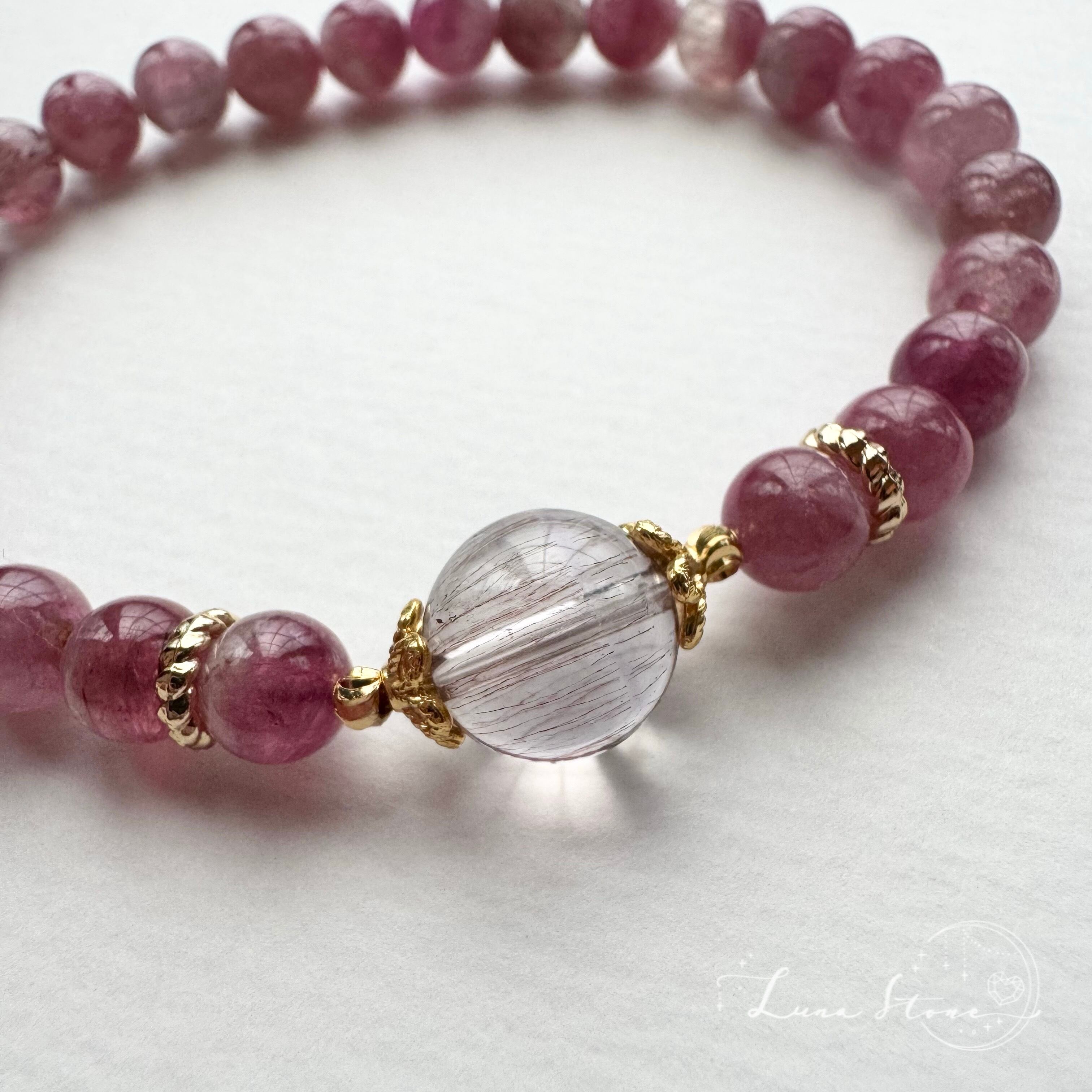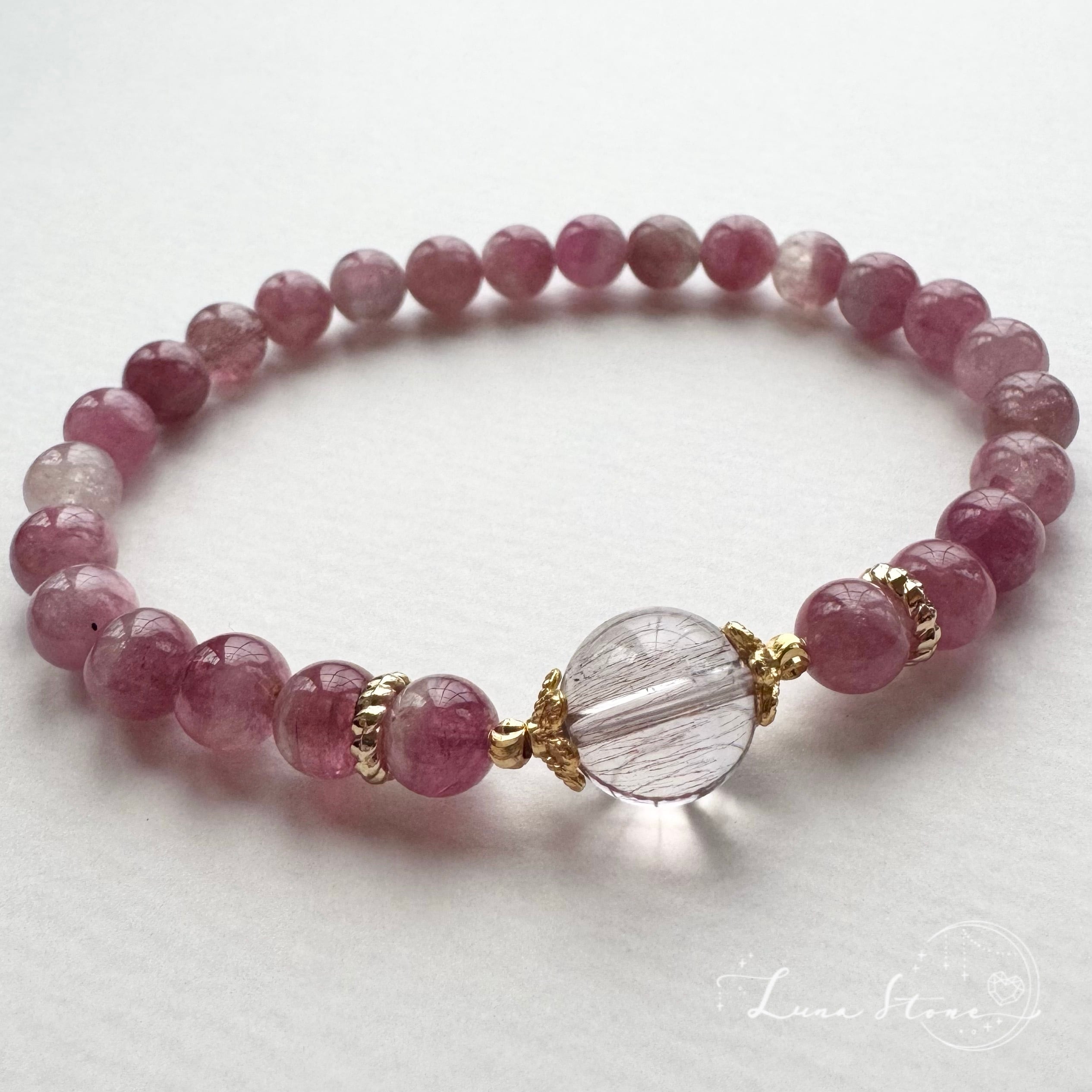 【ゲーサイトインクォーツ(スーパーセブン)×ピンクトルマリン】繊細な共鳴とやさしい彩り 天然石ブレスレット