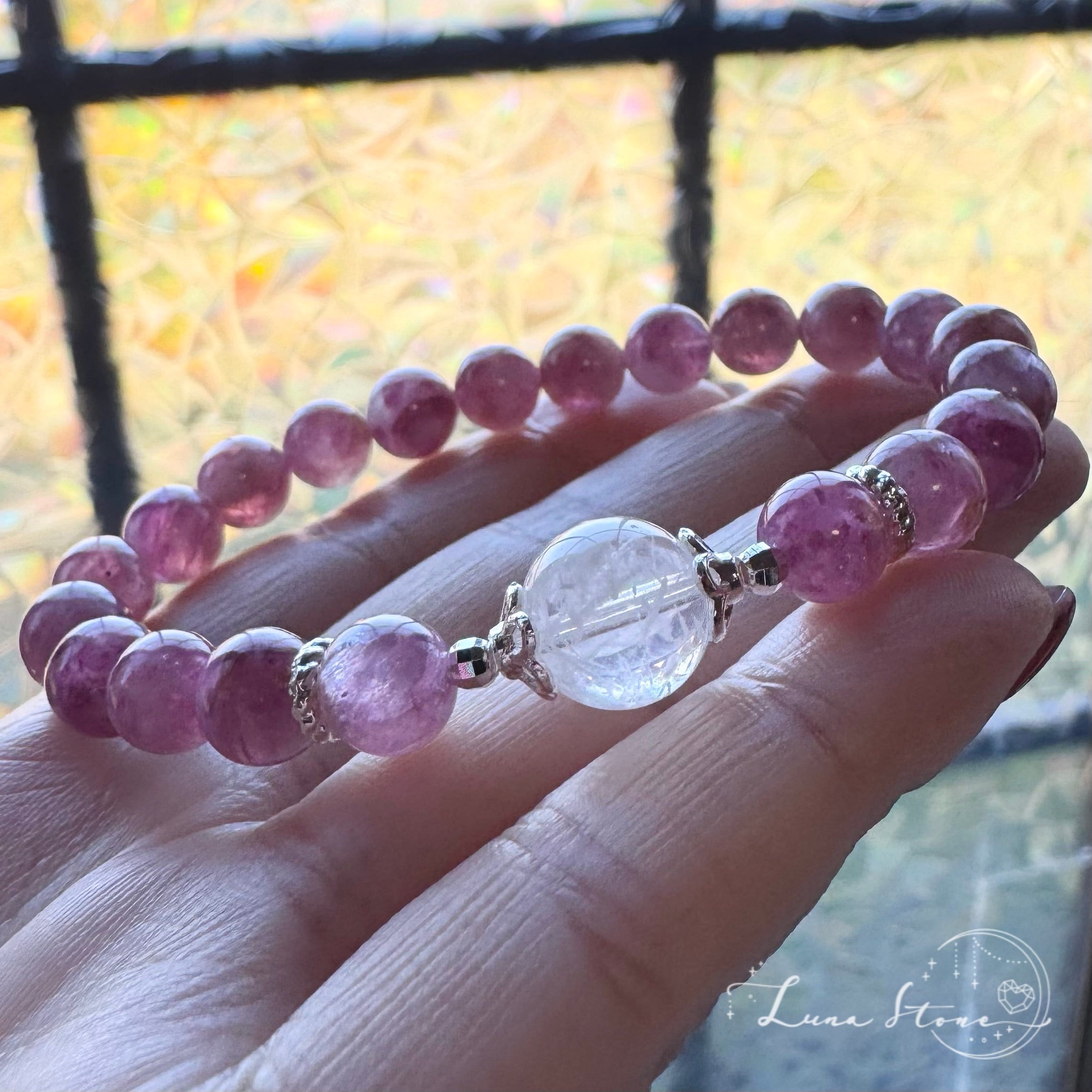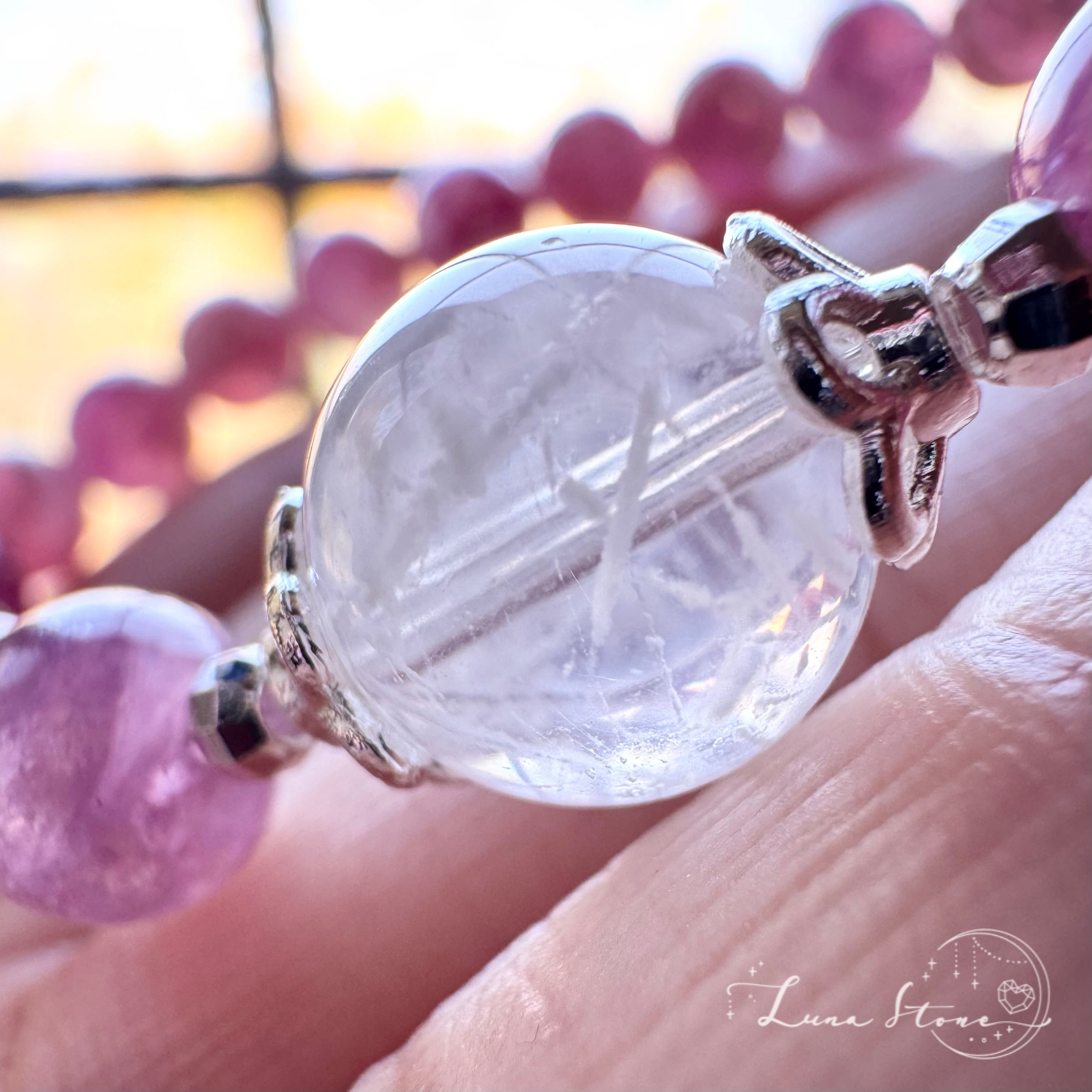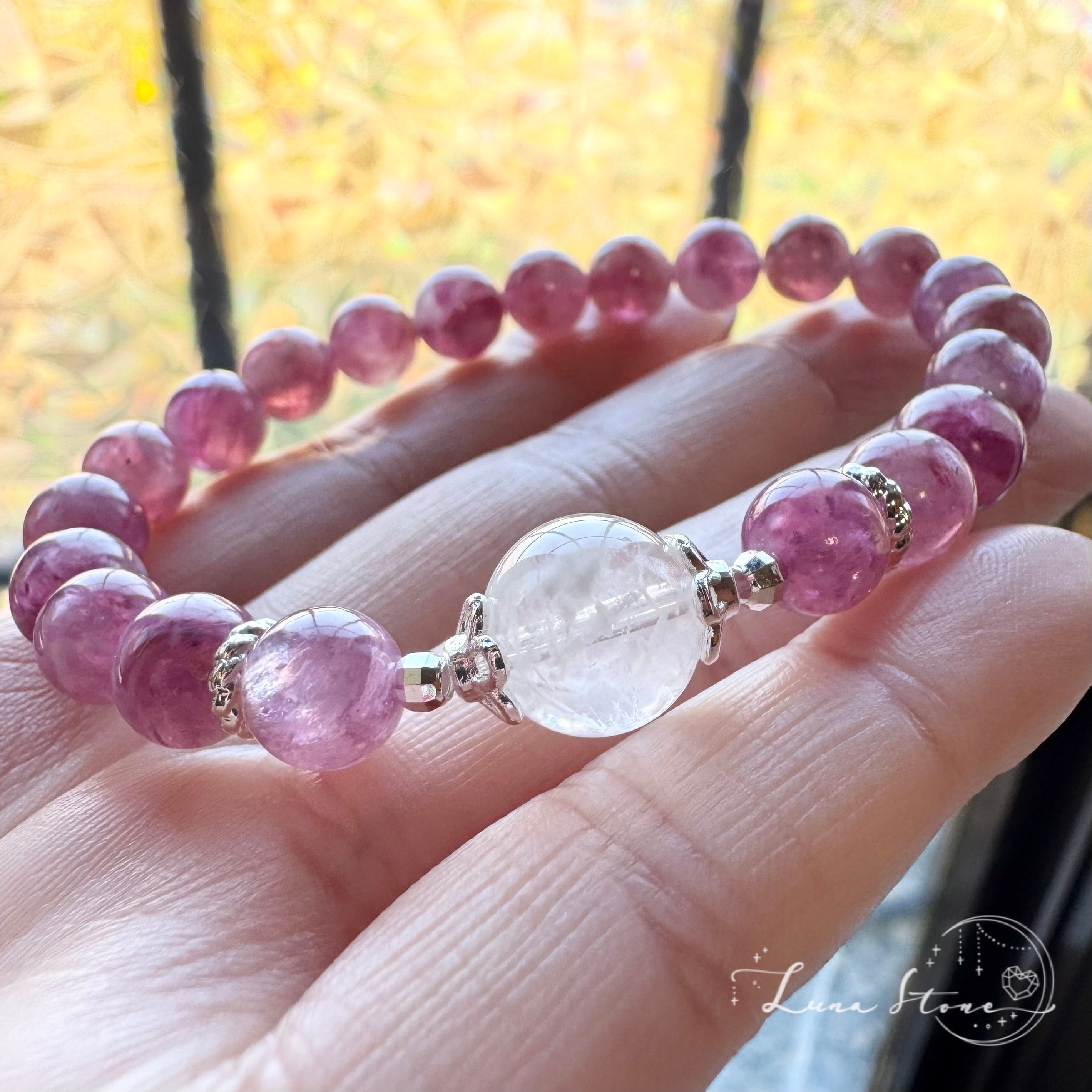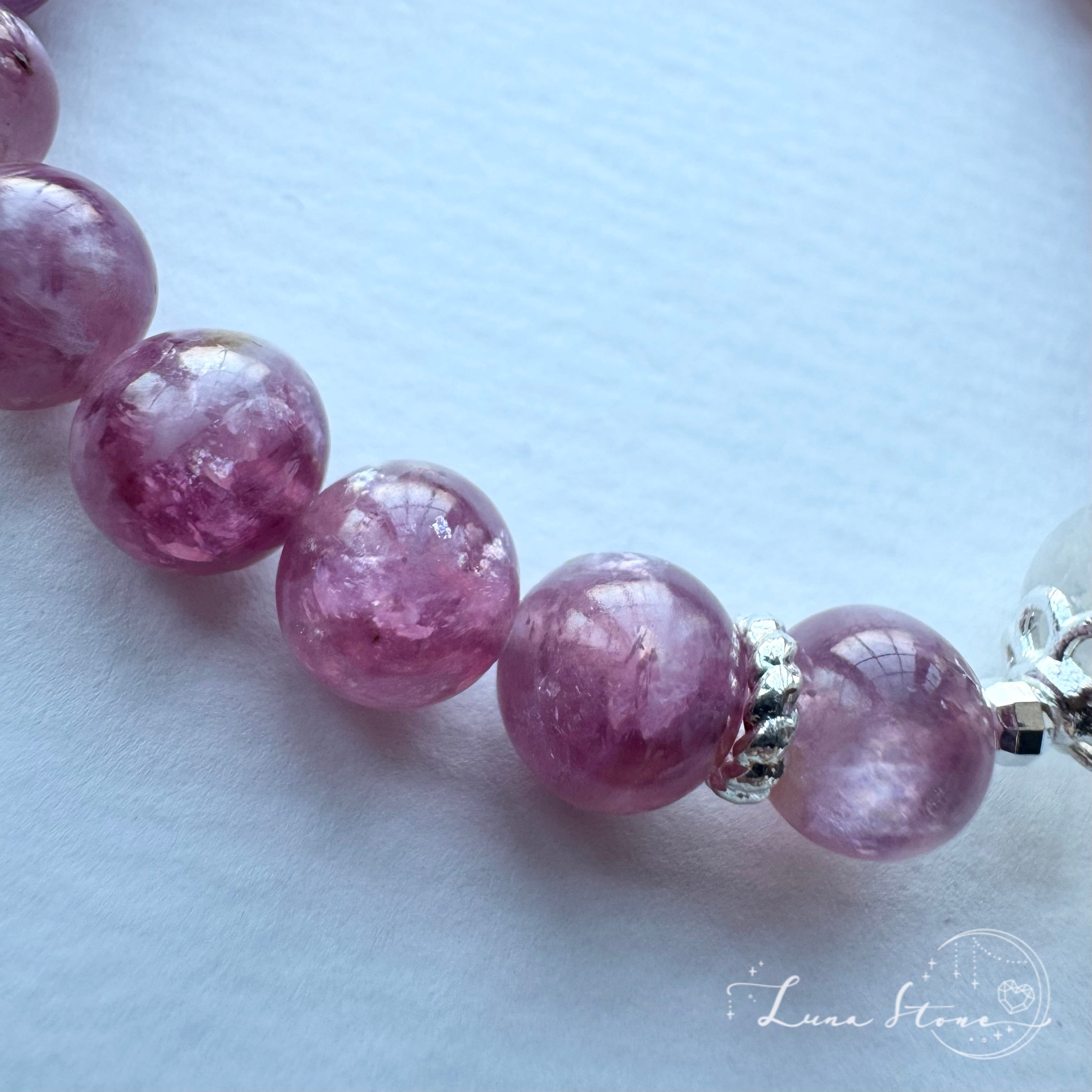【セリサイトインクォーツ×ピンクマイカ】穏やかな輝きが寄り添う癒しの色彩 天然石 ブレスレット