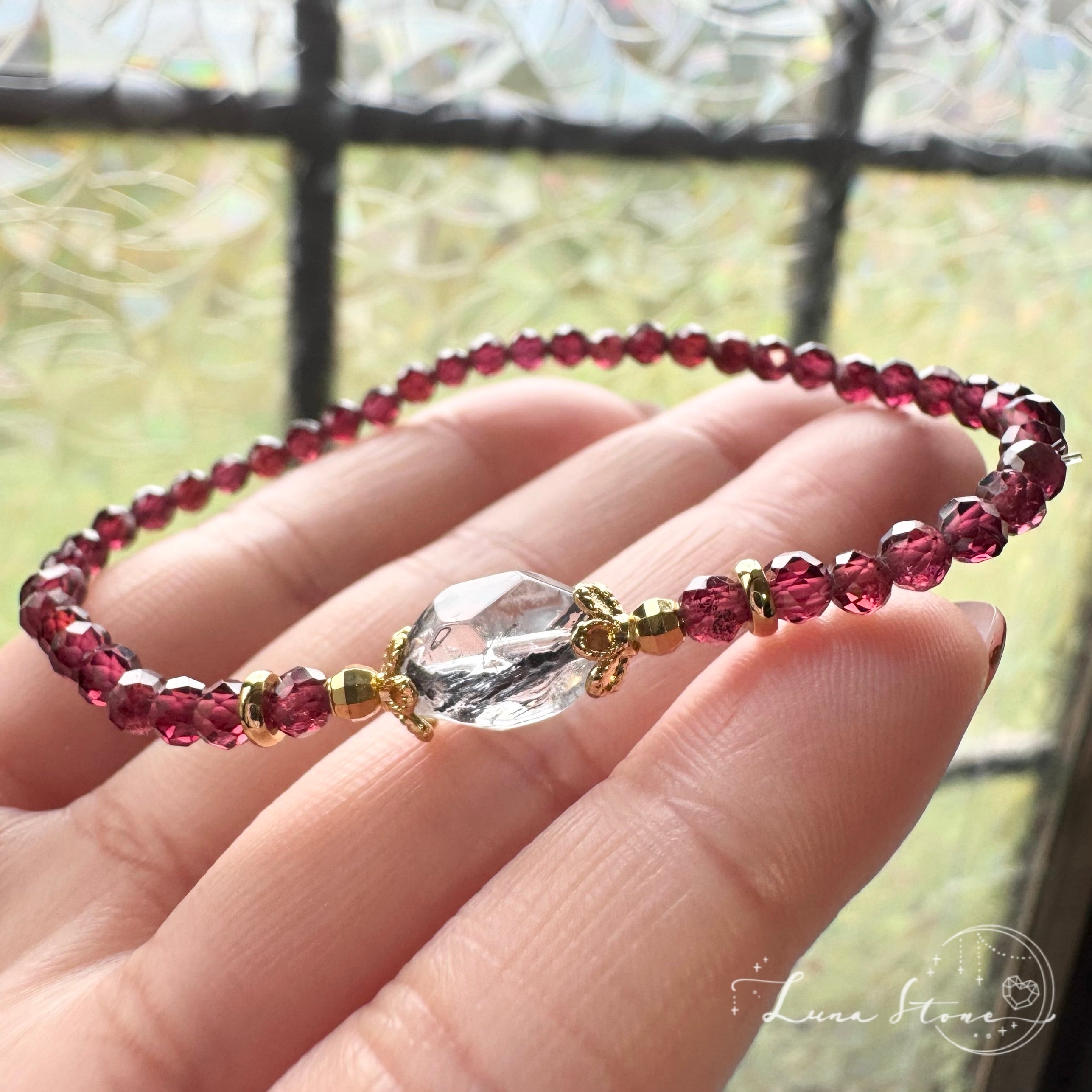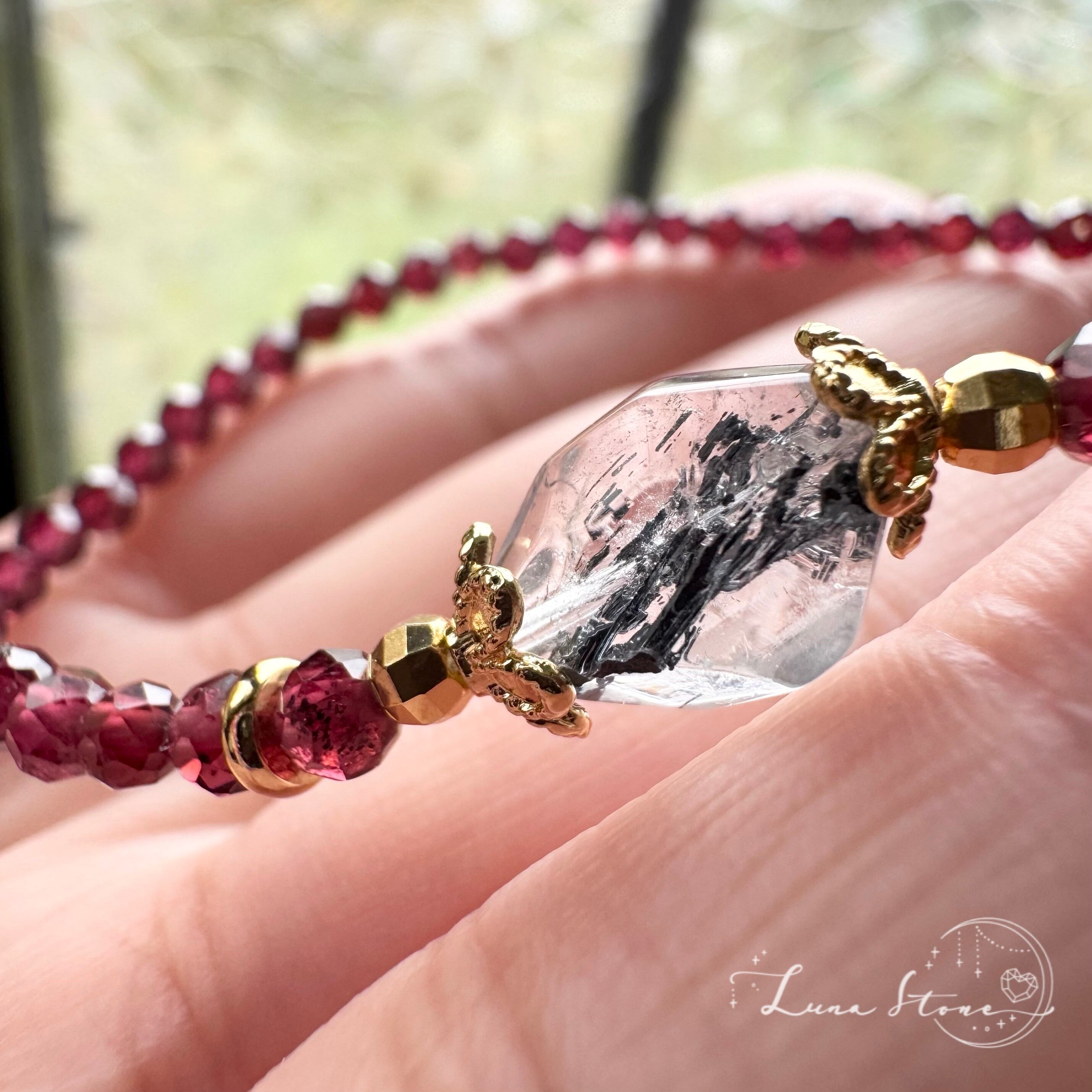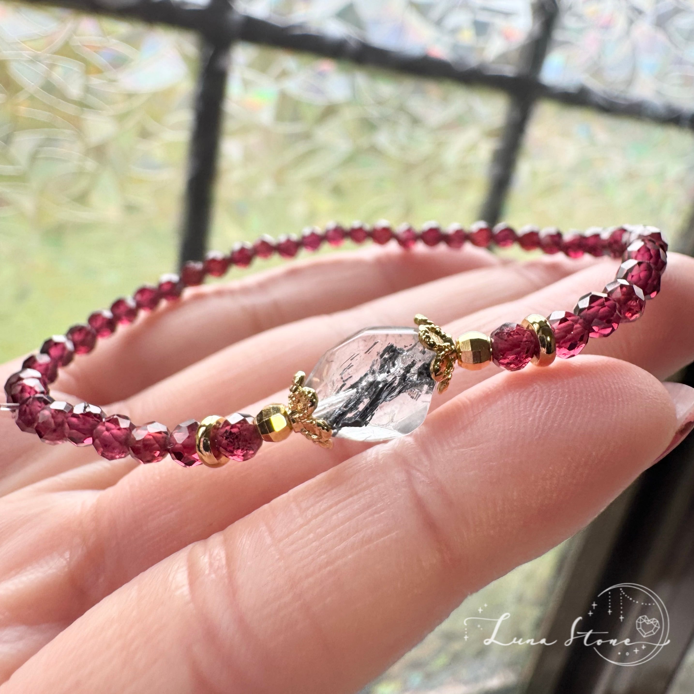 【スティブナイトインクォーツ×ロードライトガーネット】静かな存在感が美しい大人の天然石 ブレスレット