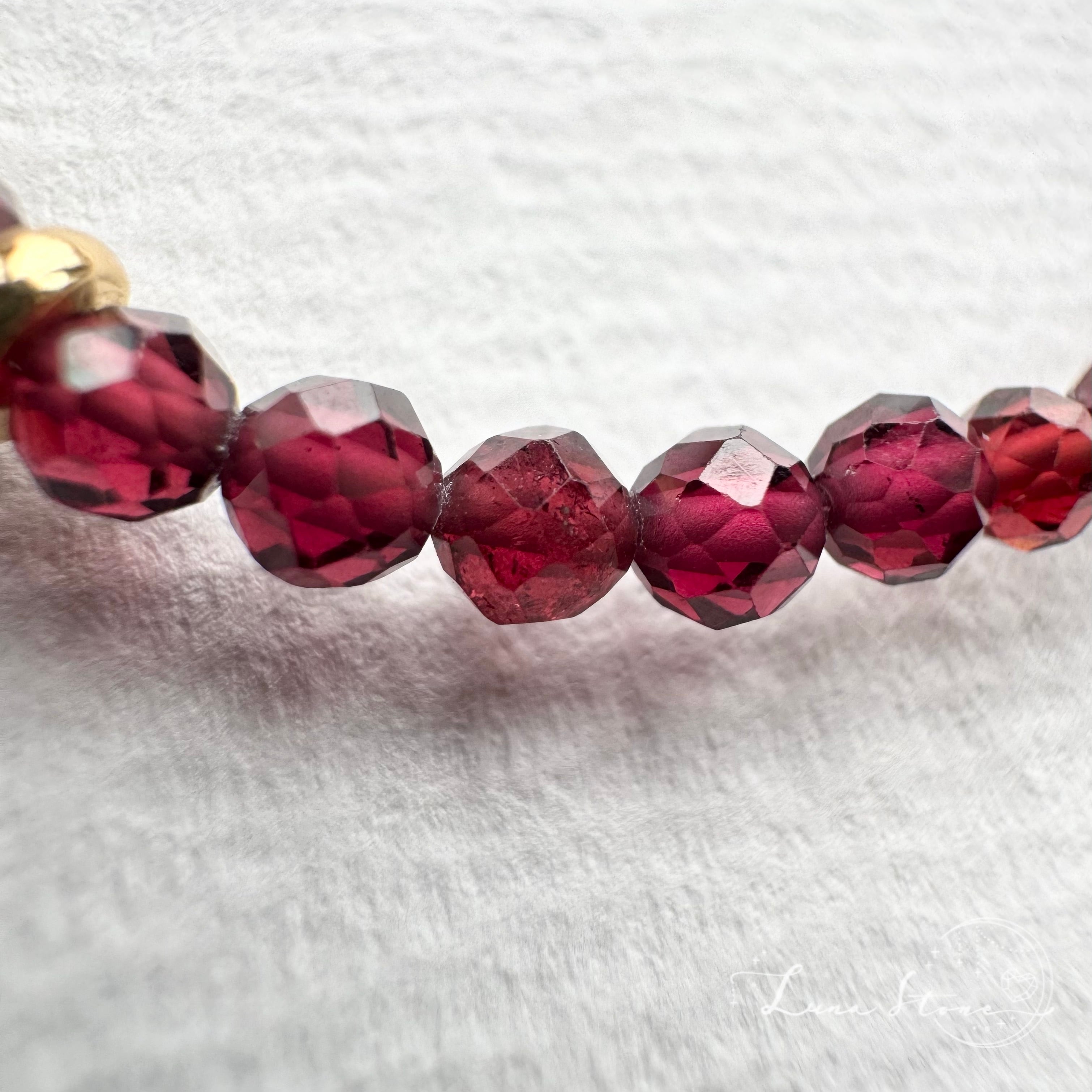 深みのあるワインレッドのロードライトガーネットを丁寧に連ねた