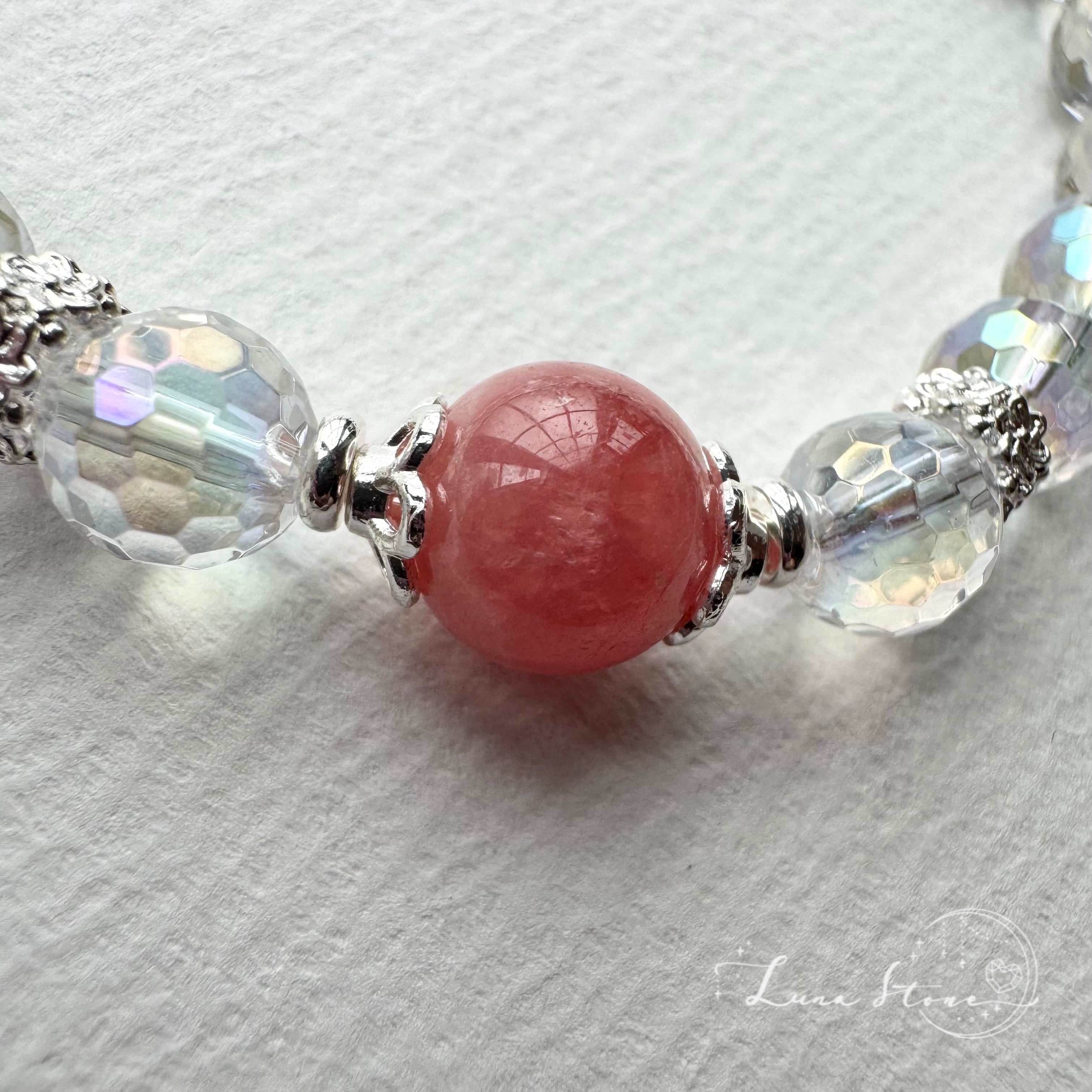 ☆再販デザイン【インカローズ×アクアオーラ】やさしいピンクと透明な輝き 天然石 ブレスレット