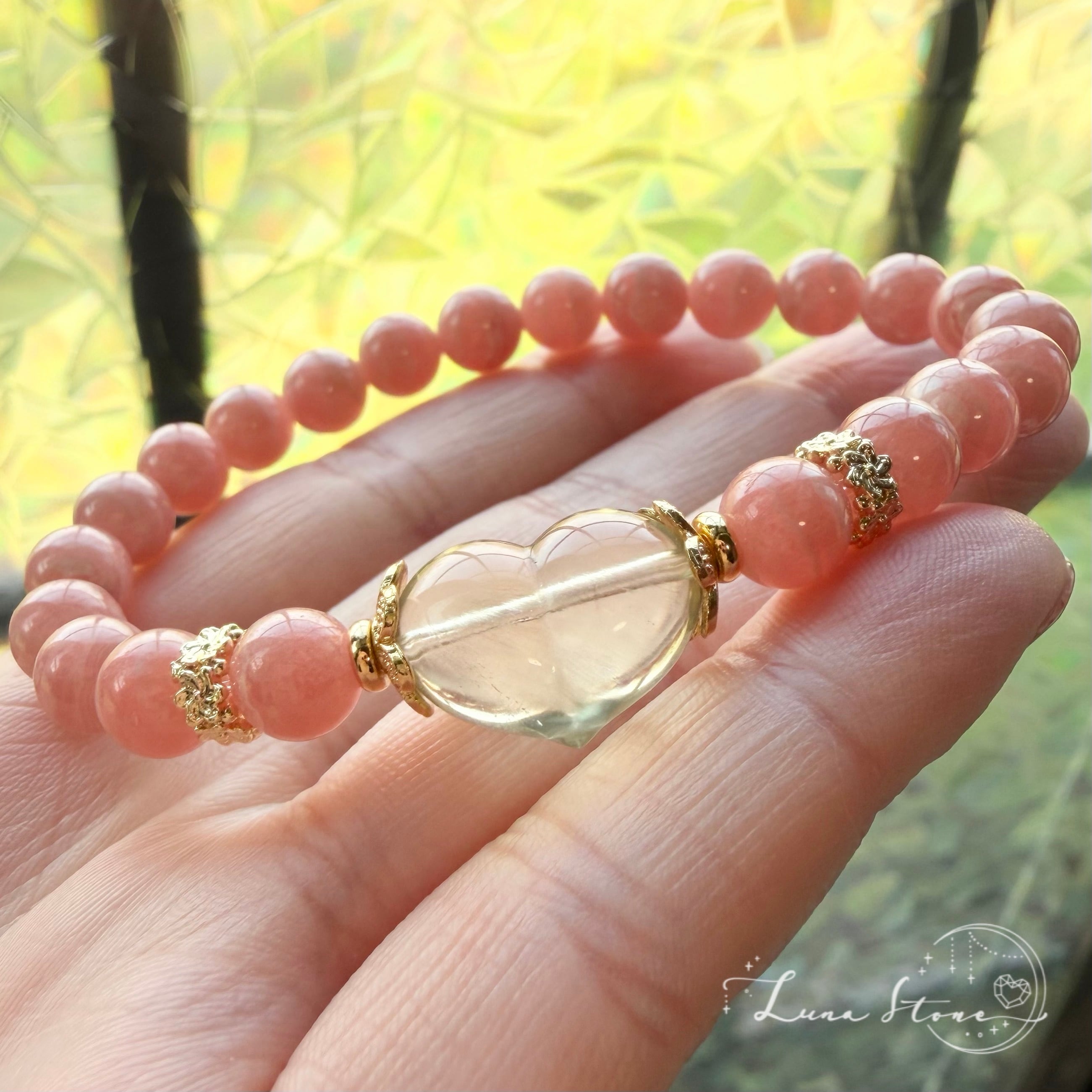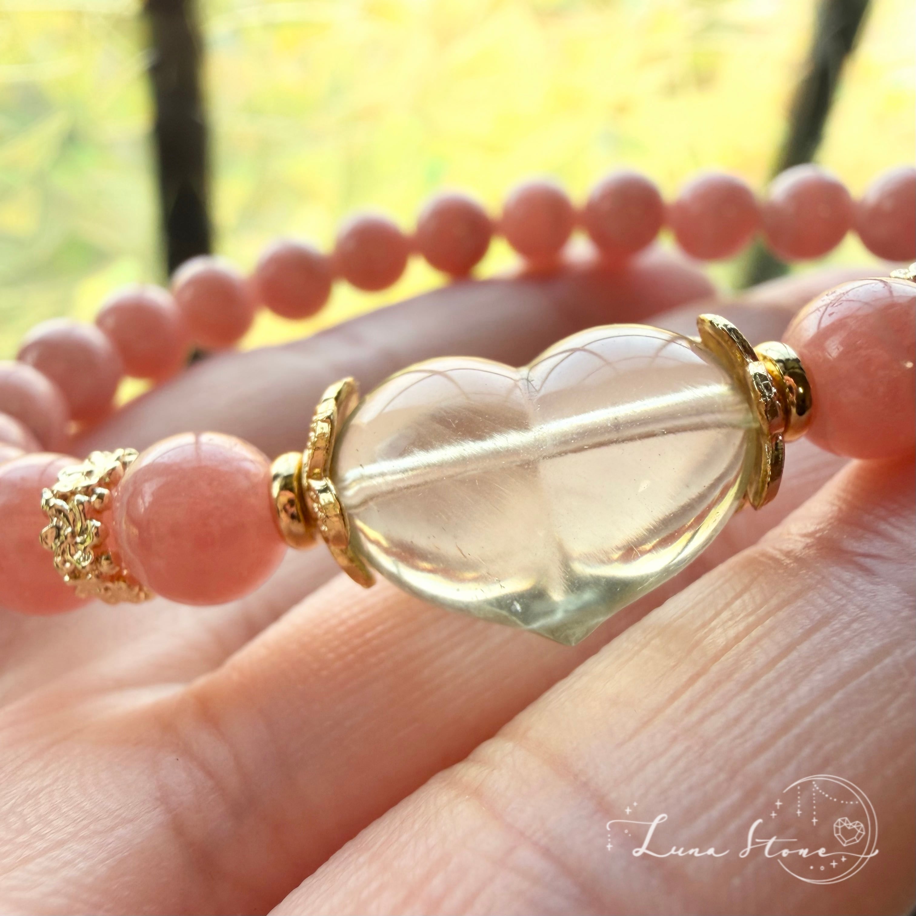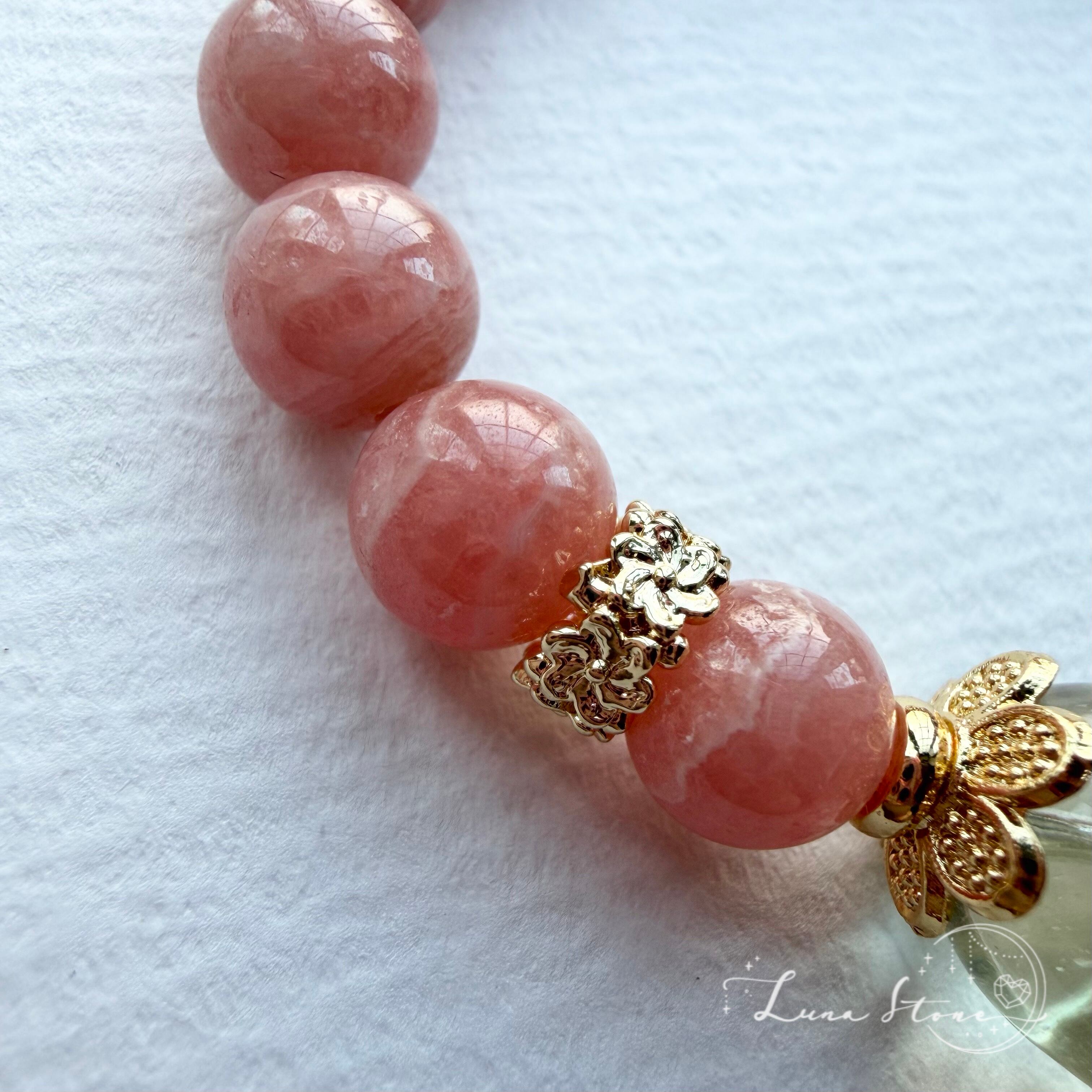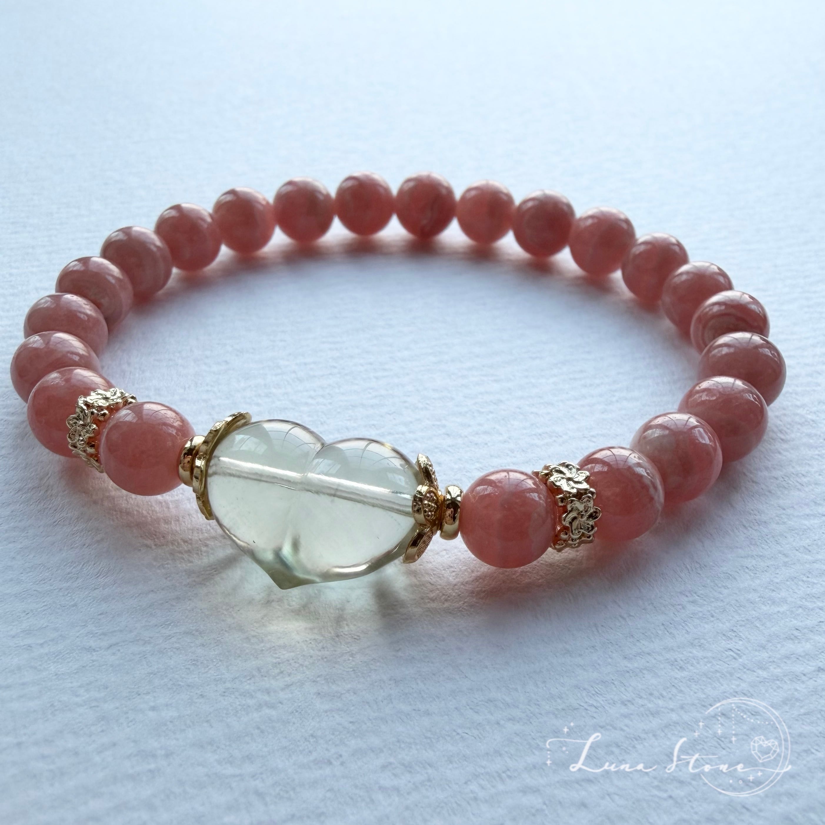 【リビアングラス×インカローズ】やわらかな愛の天然石 ブレスレット
